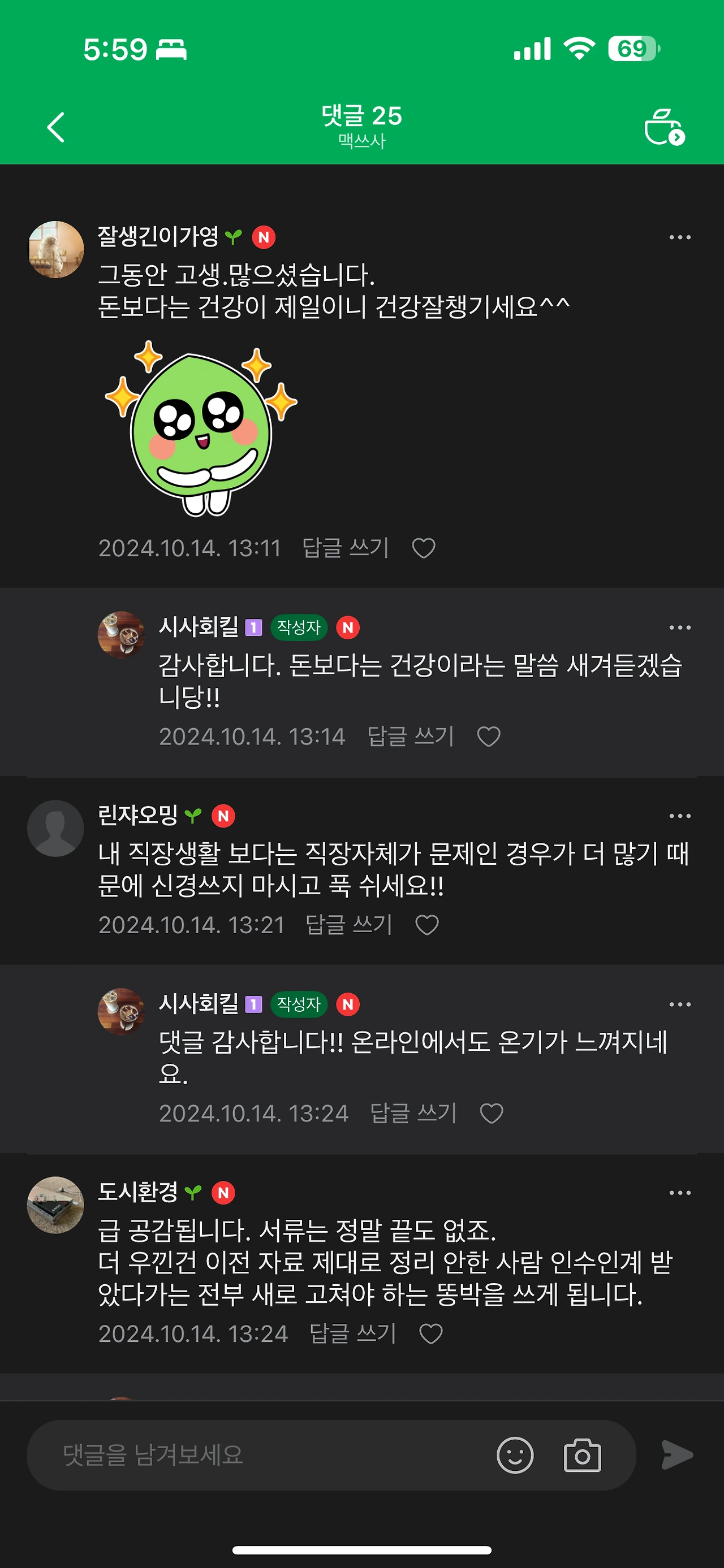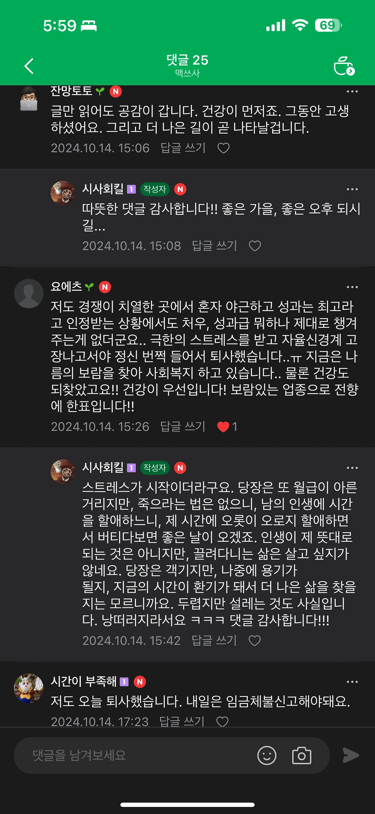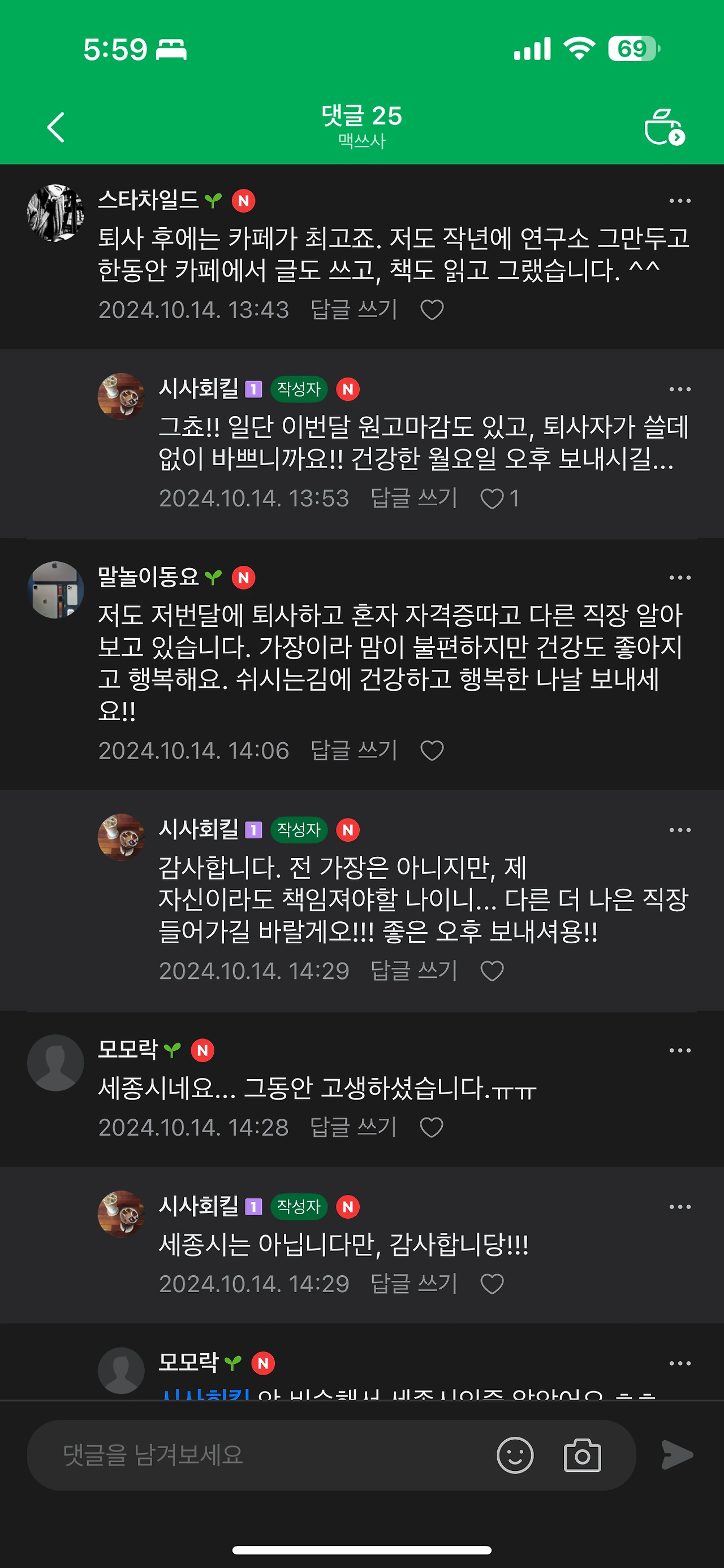 퇴사가 자랑도 아니고, 어디다 얘기할 이유도 더더욱 없는데, 그냥 자주 가는 카페에 그냥 푸념처럼 늘어놓았다. 몇 시간 사이에 10개의 댓글이 달렸다. 온라인이지만 글에서도 진심이 느껴지는 것은 어쩔 수 없다. 굳이 댓글을 달 필요도 없고, 굳이 내 퇴사 관련 글을 읽을 이유도 없다.