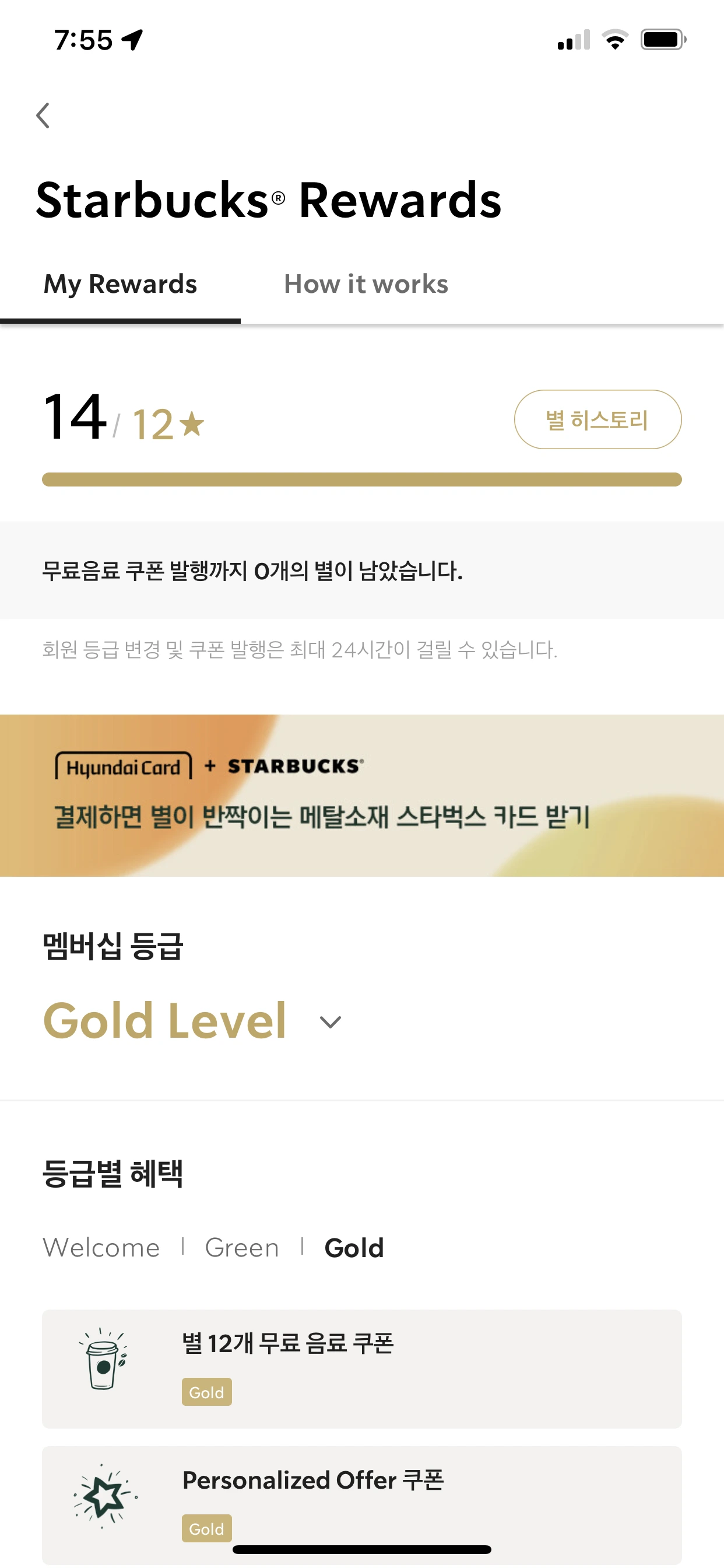 어제부로 스타벅스는 400원이 올랐다. 그리고 배려를 해주는 것 마냥 텀블러 할인도 400원으로 너무 많이 100원이나 상승해줬으며, 별 적립 이벤트까지 있어서 머리만 잘 쓰면 최대 4개까지 적립을 해준다. 그래서 나도 어제오늘 별을 잔뜩 모았다.