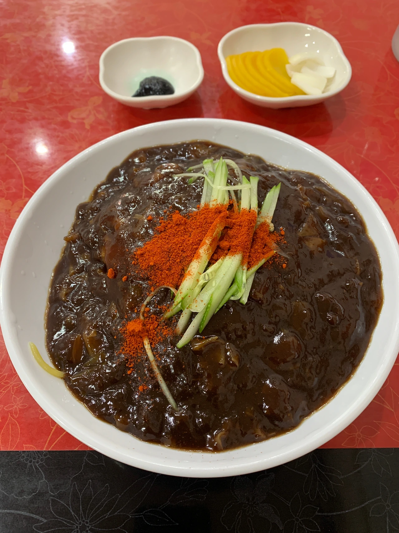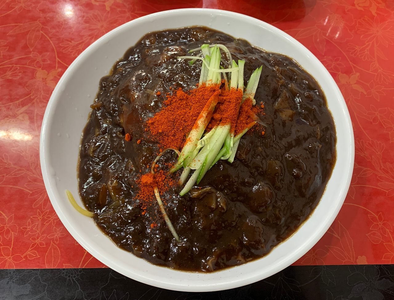 사진 그대로다. 일단 양념은 살짝 옅은 느낌을 지울 수가 없었다. 그래도 맛있겠지라며 면과 양념을 섞어보는데, 아쉽다. 쫄깃 탱글 해야 할 면발은 이미 퍼질 대로 퍼져 있었다. 그냥 아쉬운 대로 먹었다. 더 솔직하게 말하면 짜장면의 양념은 나쁘지 않았으나, 면은 밀가루 맛이 강력했고, 퍼져있어서 식감은 이미 포기한 상태다.