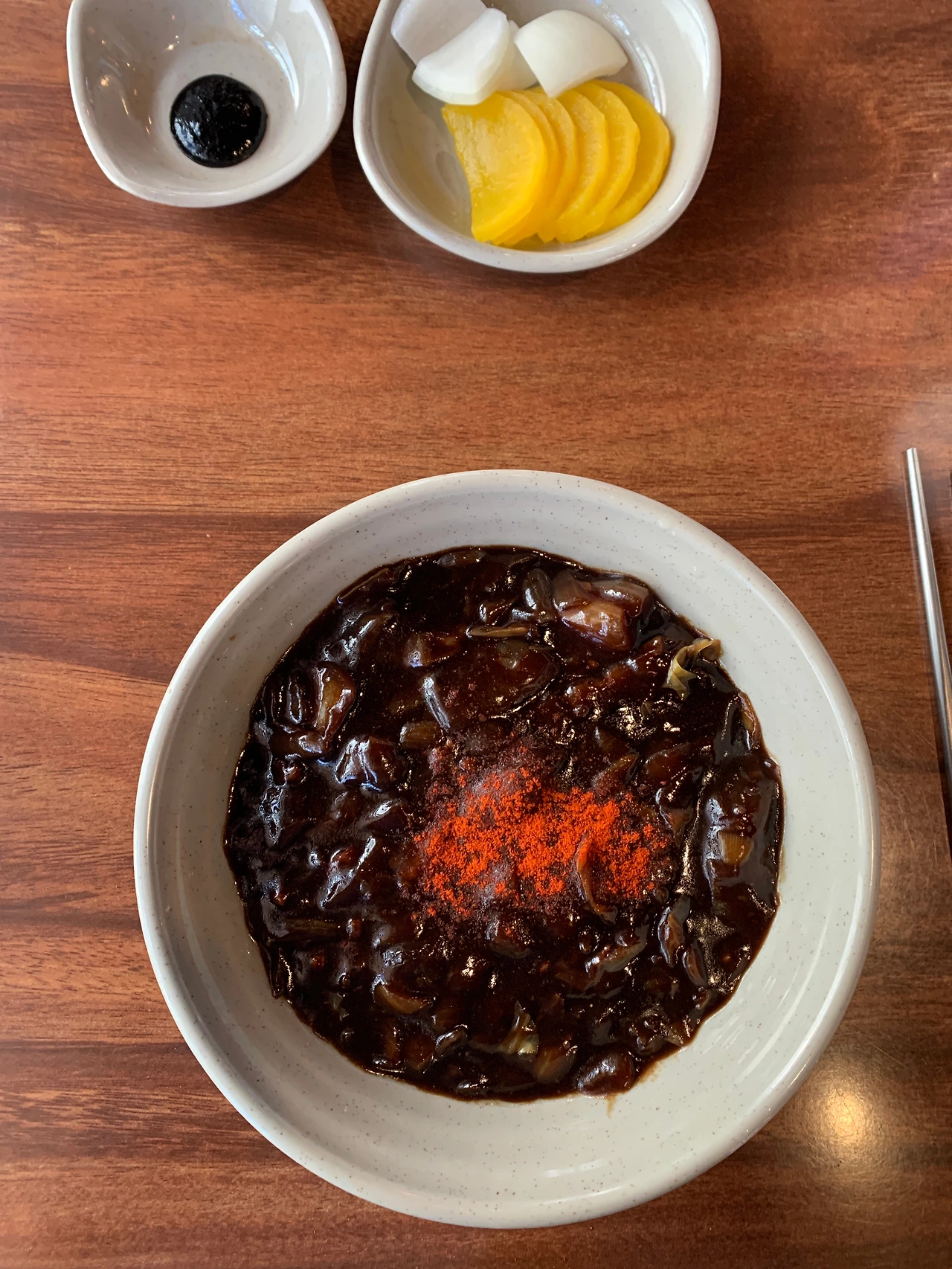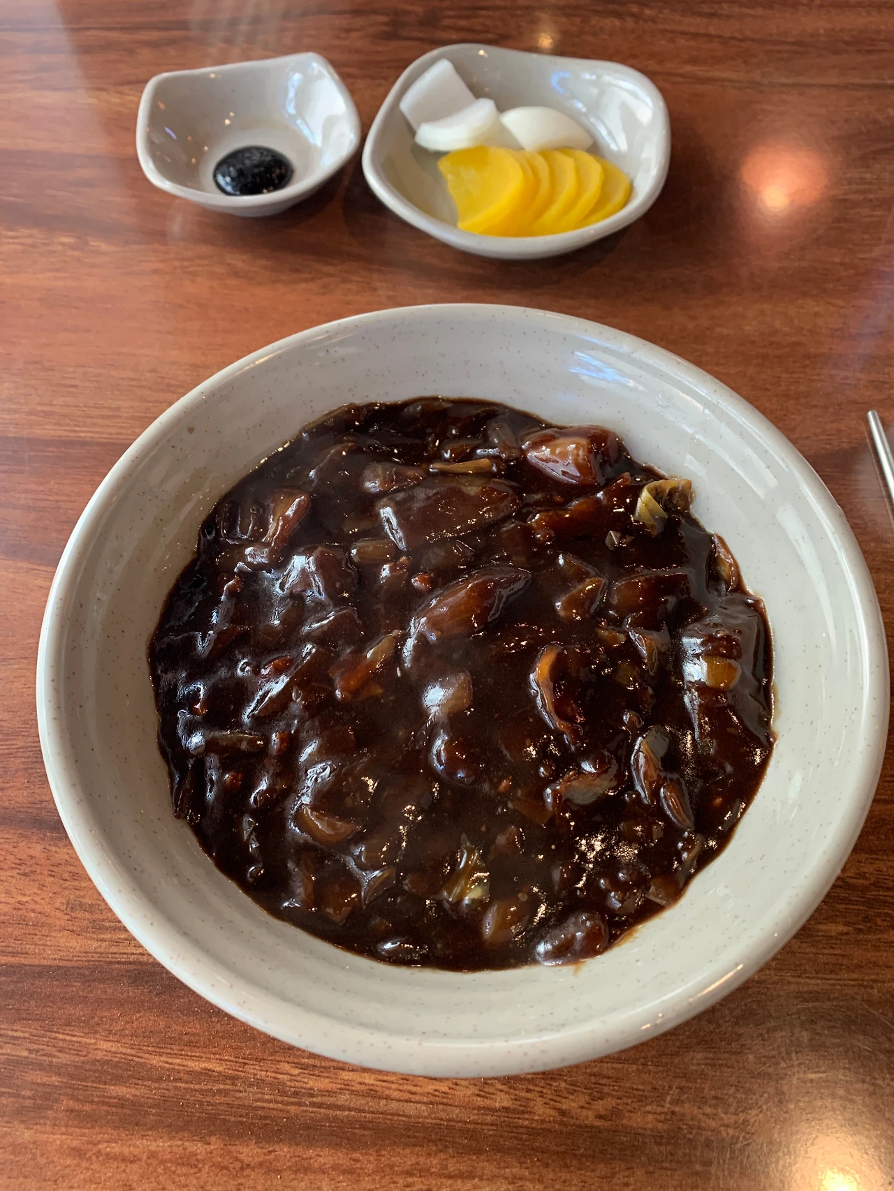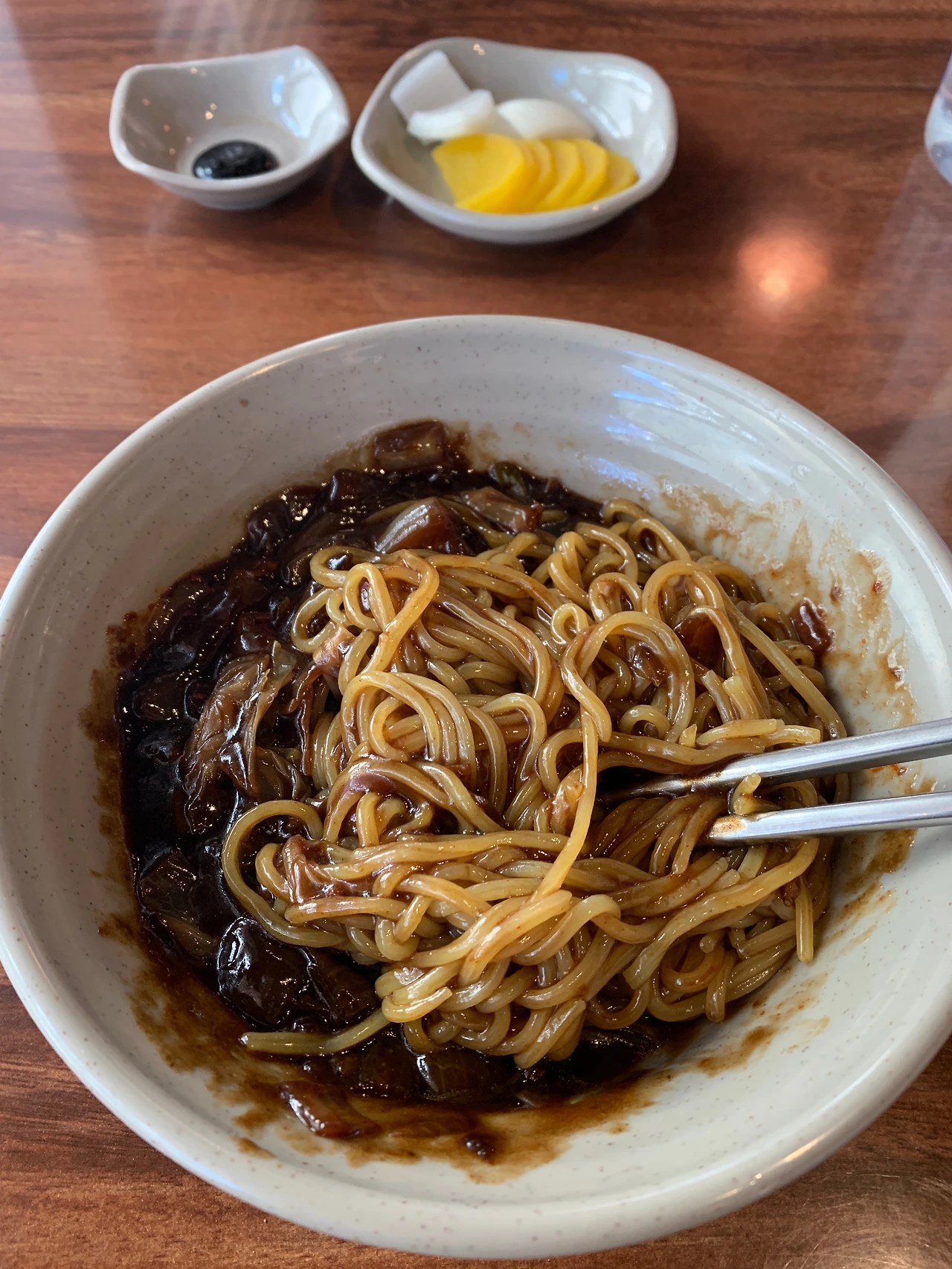 잠깐 화장실을 다녀온 사이에 짜장면이 나의 테이블 앞에 놓인다.