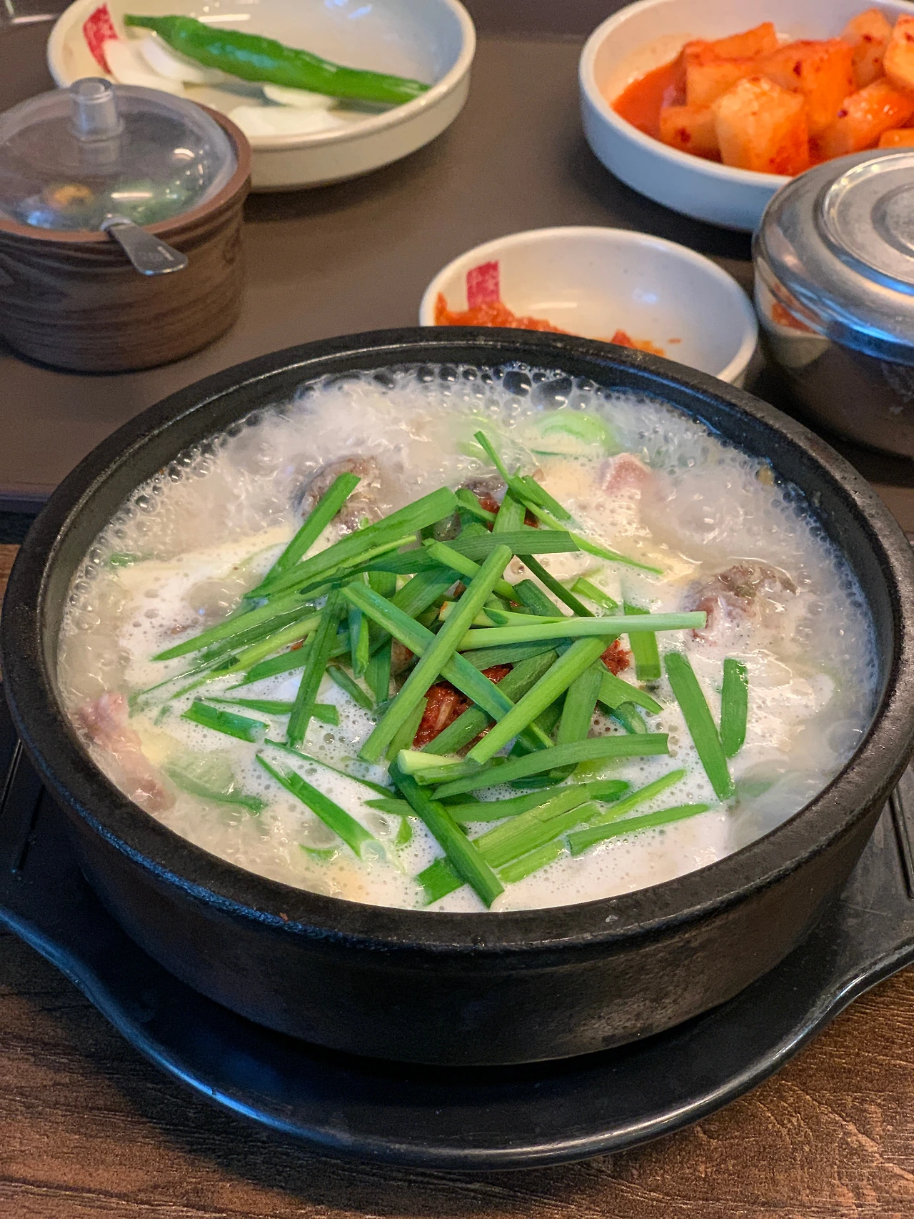 국밥을 주문하고, 밑반찬과 일단 가볍게 두 잔 정도 마신다.