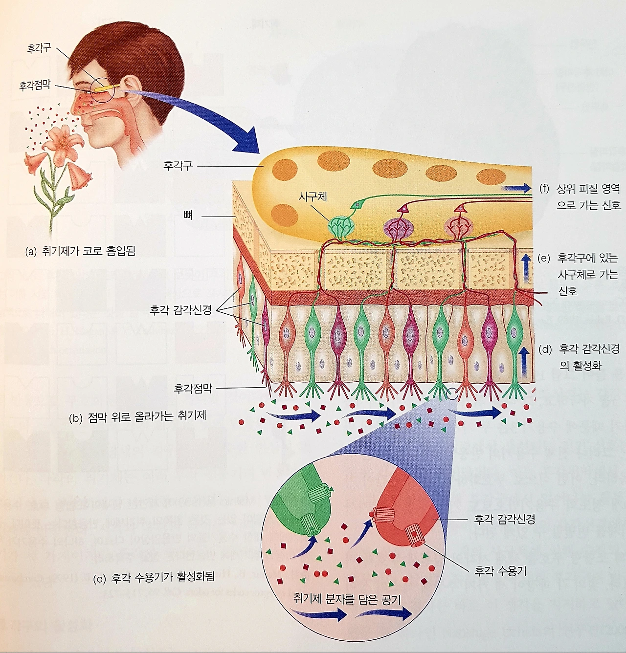 출처: 후각 체계의 구조, E. Bruce Goldstein, <감각과 지각> 제7판, 김정오 외 옮김, 시그마프레스, 405쪽.