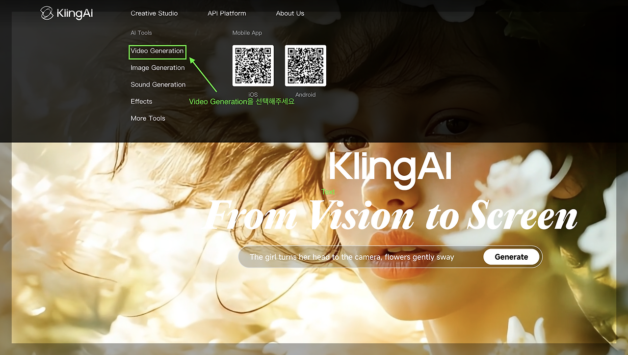 일단 Kling AI 사이트에 가입해주셔야 합니다. 가입하면 일단 무료로 크레딧 (무료로 시도해 볼 수 있는 포인트라고 생각하시면 됩니다)을 받을 수 있는데, 약 3편 정도의 동영상을 생성해 볼 수 있습니다.