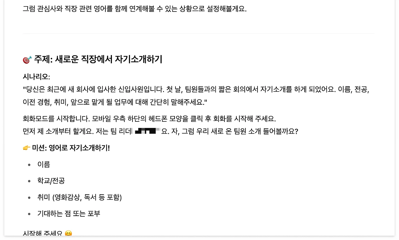 스픽에서 제공해 주는 AI 프리톡 기능(유료)과 비슷하다고 느꼈어요.