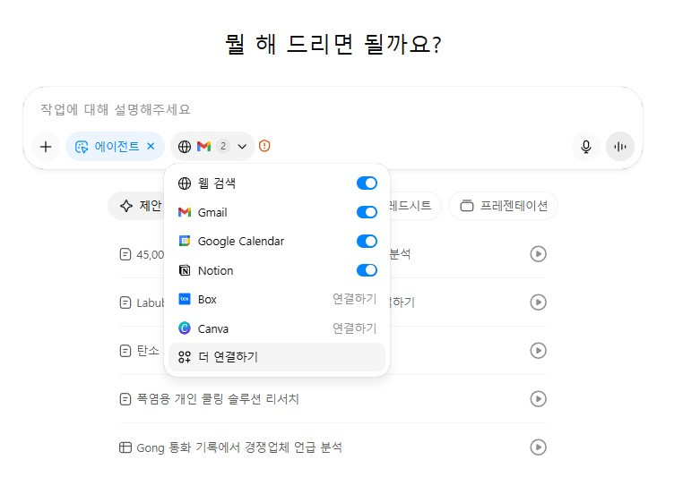 커넥터는 이렇게 개인이 사용하는 서비스에 접근해서 정보를 읽어오는 것, 정리하는 것뿐만 아니라 생성/편집하는 범위까지 대응 가능합니다. n8n 등 자동화 툴을 사용하셨던 분들이라면 이미 이런 활용을 하고 계셨겠지만 그렇지 않은 분들께는 에이전트에게 드디어 팔다리가 생겼구나! 하는 느낌을 받으실 겁니다.
