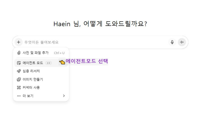 (초보용 섹션) 챗GPT의 다양한 모드를 아직 활용해보시지 않으셨다면, 아래 내용을 따라 해주세요 (이미 잘 아시는 분들은 스킵하셔도 됩니다.) 커넥터를 활용하시려면 채팅에서 에이전트모드를 선택한 다음에 개인 인증을 통해 서비스를 연동해야 합니다. 서비스가 연동된 상태에서 연동된 서비스와 관련된 요청을 하면 챗GPT가 알아서 동작합니다.