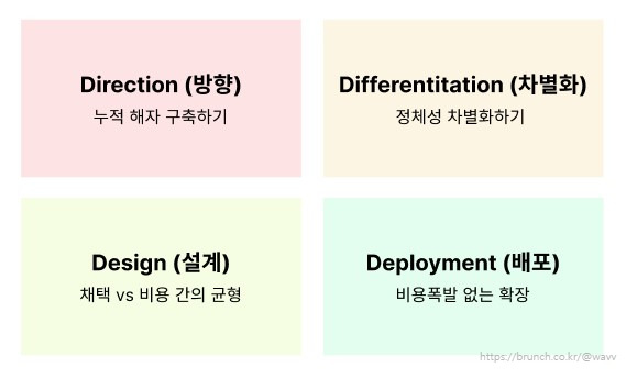 쏟아지는 기술 뉴스를 따라잡기에도 버거운 요즘입니다. 이러한 검토는 차치하고 일단 빠르게 출시부터 하고 싶은 조바심도 이해가 갑니다. 하지만 속력보다 방향이 중요하다는 구태의연한 수사를 말씀드리며, 프로덕트의 흥행이 오히려 사업적 저주가 될 수 있으니 미리 진지하게 짚어 보시기를 바랍니다.