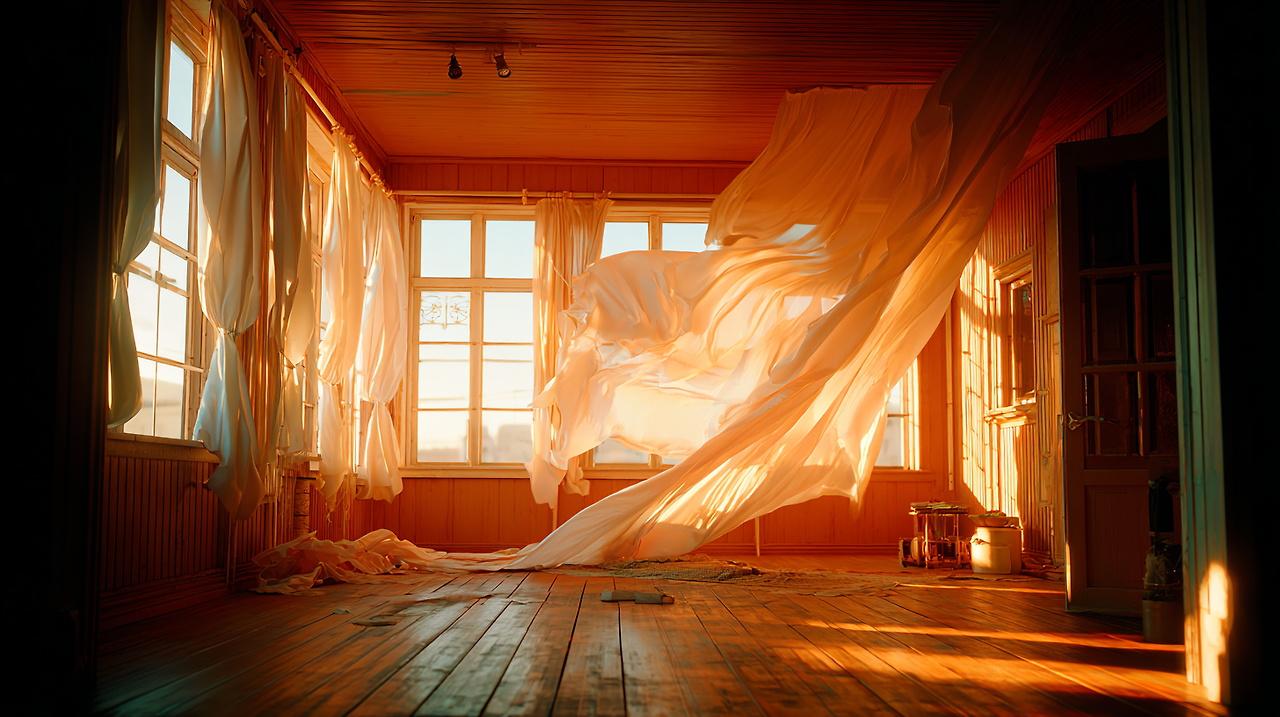 꿈 파트: 더 따뜻하고 비현실적인 웜톤, 특이한 질감 강조, 판타지 오브제로 현실과 간극 벌리기