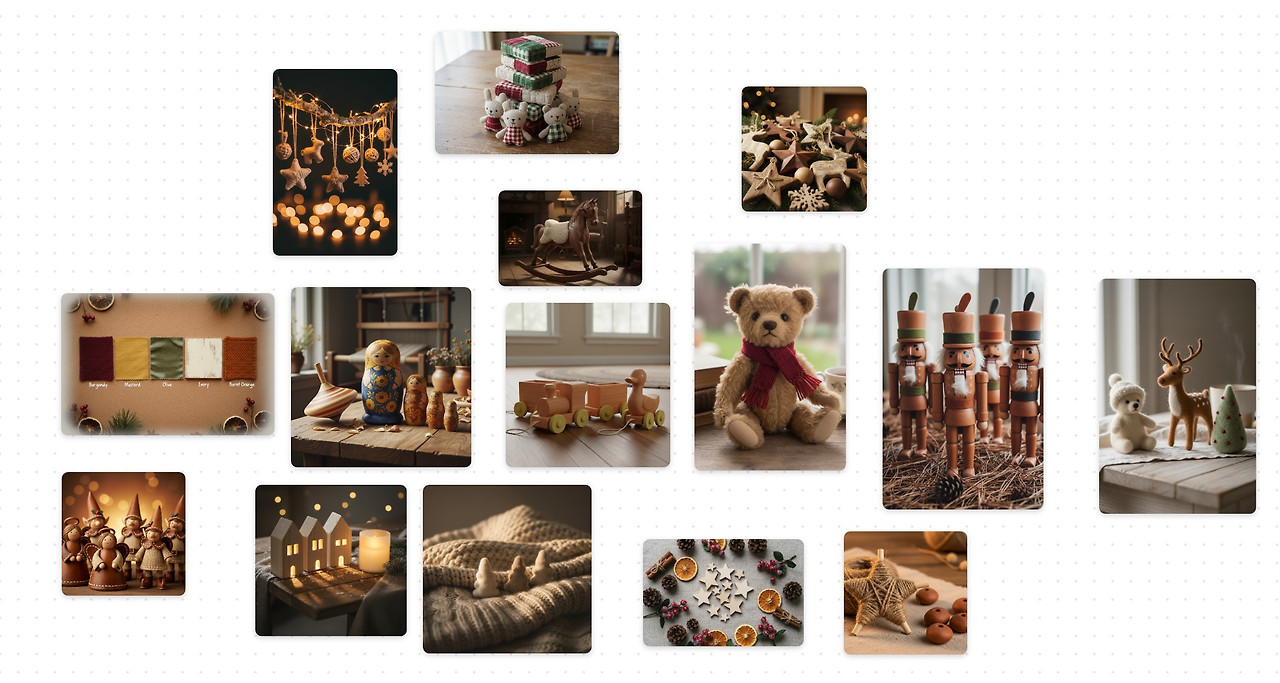 저는 위에 제시된 것 중에서 밤에 반짝이는 보케느낌, 보송보송한 펠트 느낌이 마음에 들었습니다. 믹스보드에서는 맘에드는 이미지를 선택하면 유사한 이미지를 쉽게 생성할 수 있습니다.