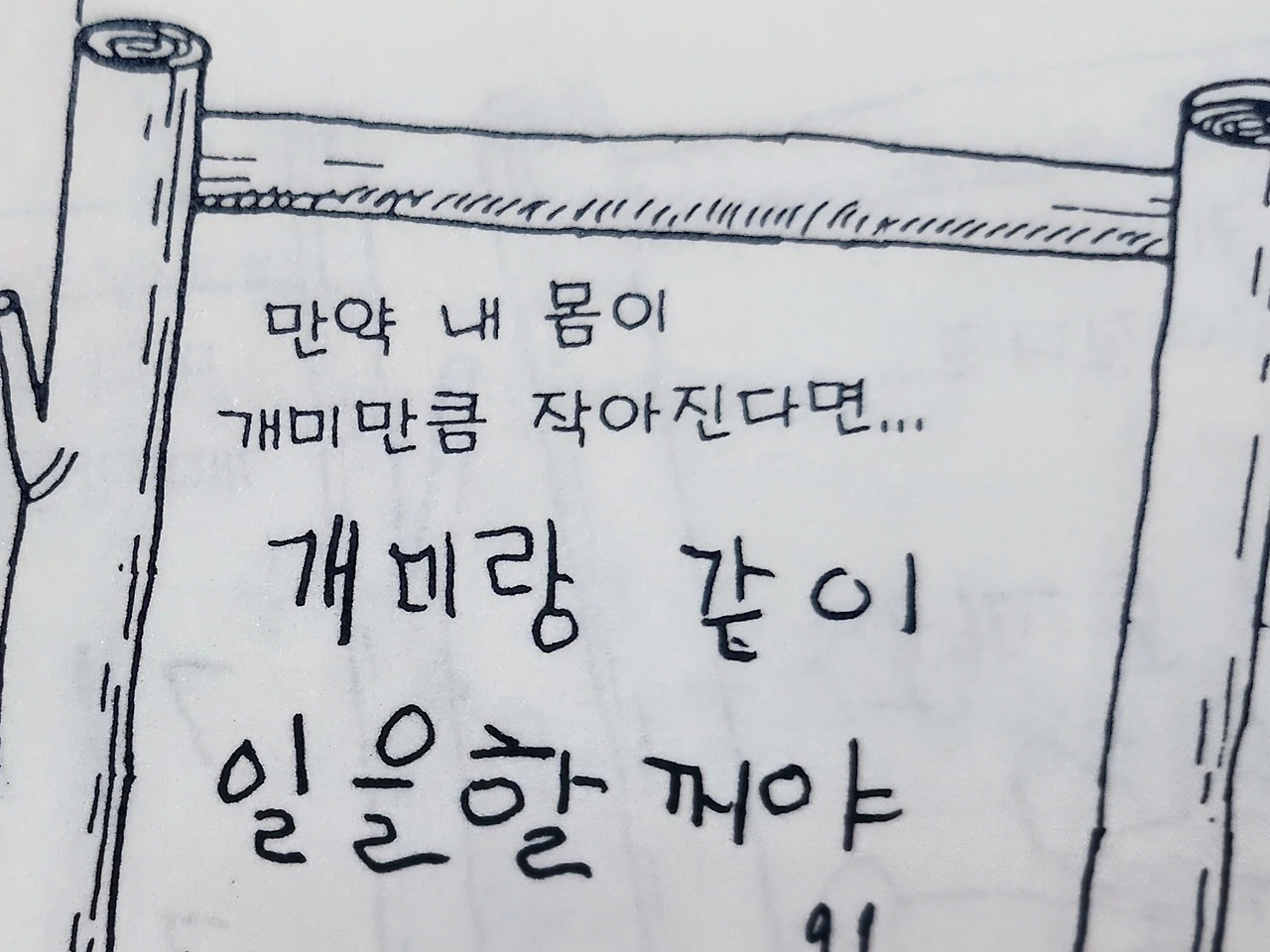 힘들게 일하며 저녁에 들어오시는 아빠를 보며 '나도 크면 아빠처럼 열심히 일할 거다'라고 하는 아들과 유치원 글쓰기에 만약 내 몸이 개미처럼 작아진다면에 뒷말 이어서 작성하는데 다른 애들 작성한걸 보니 '밥 많이 먹고 빨리 클 거예요', '개미집을 구경할 거예요' 하는데 울 딸의 '개미랑 같이 일할 거야'에 맘이 아팠다.