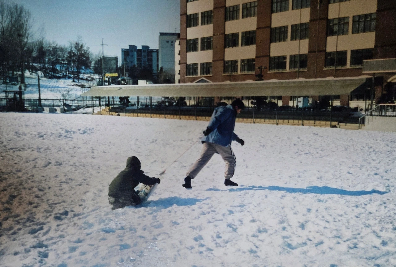 눈이 많이 쌓인 날에는 학교운동장에서 아빠가 끌어주는 눈썰매를 탔고, 동생과 눈사람도 만들었다.