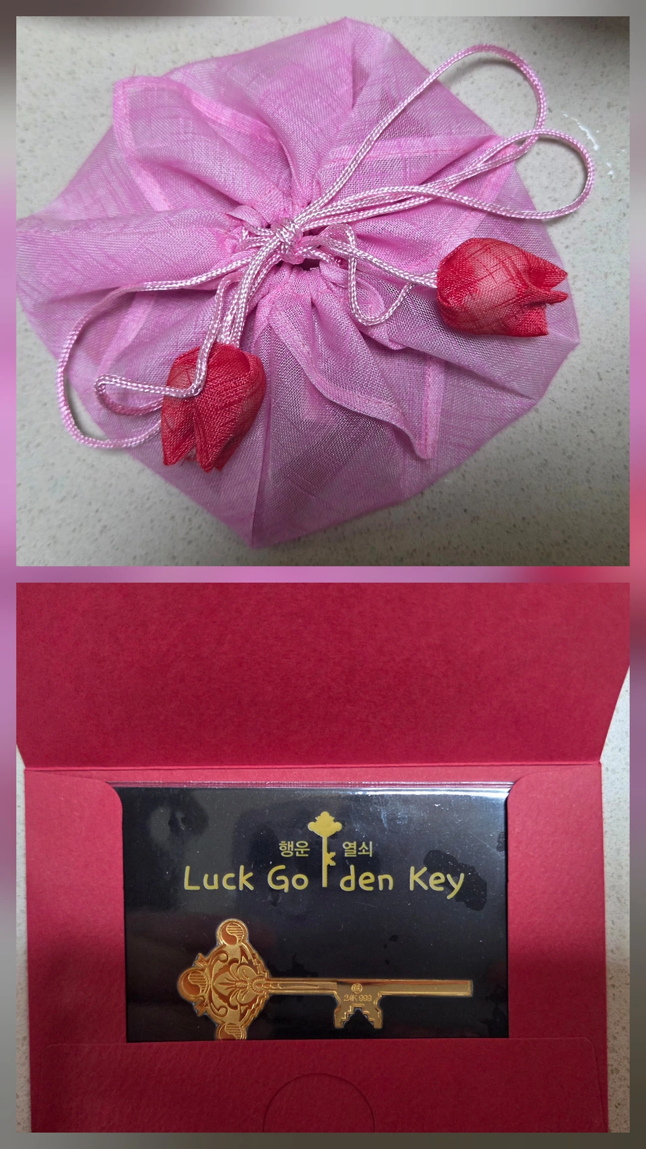 며느리에게 준비해 두었던 행운의 열쇠를 선물했다. 딸이 결혼할 때 기념으로 구입했는데 그때 며느리 것까지 사둔 것이다.