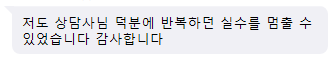 엄마 덕분에 반복하던 실수를 멈출 수 있었던 건 엄마가 해준 말이 도움이 되었다는 뜻이겠지?
