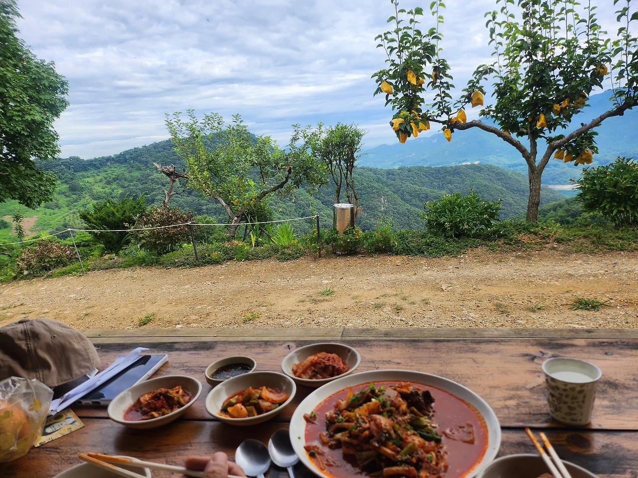 청풍호를 바라보며 두부 두루치기와 부침개로 조식을 할 수 있는 전망 좋은 장소이다.