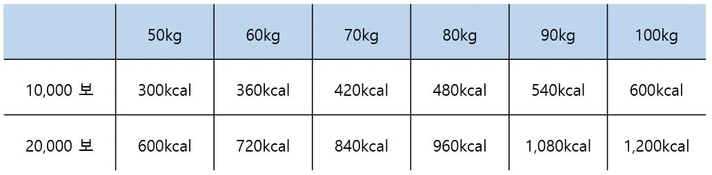성인은 인체가 자연적으로 소비하는 열량에 대비하여, 매일 600kcal를 추가로 섭취하고 있으며, 결국 운동을 통하여 600kcal를 태워야 몸무게의 현상 유지가 되는 것이다. 평상시에 운동을 의식적으로 한 시간 이상 할 필요를 느끼나, 직장인이 이러한 시간을 내기가 쉽지 않다. 결국 하루에 만 보 걷기는 가장 쉬운 실천 방안이 된다. 만 보 걷기는 85kg 성인을 기준으로, 510kcal에 해당한다. 만 보는 7km에 해당한다.