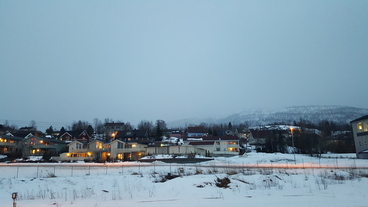어둠이 깔리며 오로라를 보고자 하는 마음은 급해졌다. 당장 머리 위로는 녹색 비스무리한 것도 보이지 않고, 하는 수 없이 더 북쪽으로 가야 한다는 생각에 기차역으로 가서 북쪽으로 가는 기차에 몸을 실었다. 기차는 해안을 따라, 피오르드 지형을 따라 한없이 위쪽으로 올라갔다. 두 시간 정도 기차가 달린 뒤에 한적해 보이는 시골역에 정차하니, 조용하고 한적한 시골의 모습이 펼쳐질 뿐, 오로라의 모습은 그 어디에서도 찾아볼 수 없었다. 준비없이 무턱대고 출발한 오로라 여행은 완전 실패였다.