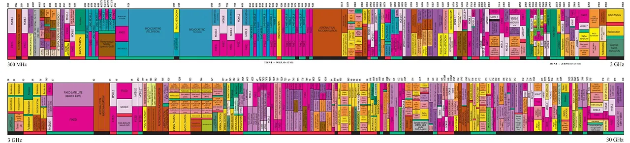 참고: 미국 스펙트럼 챠트 (https://www.ntia.doc.gov/files/ntia/publications/january_2016_spectrum_wall_chart.pdf)
