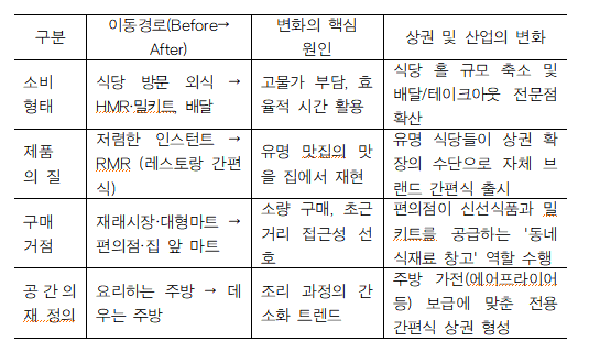 외식에서 간편식(HMR·RMR)으로의 이동 및 상권 변화