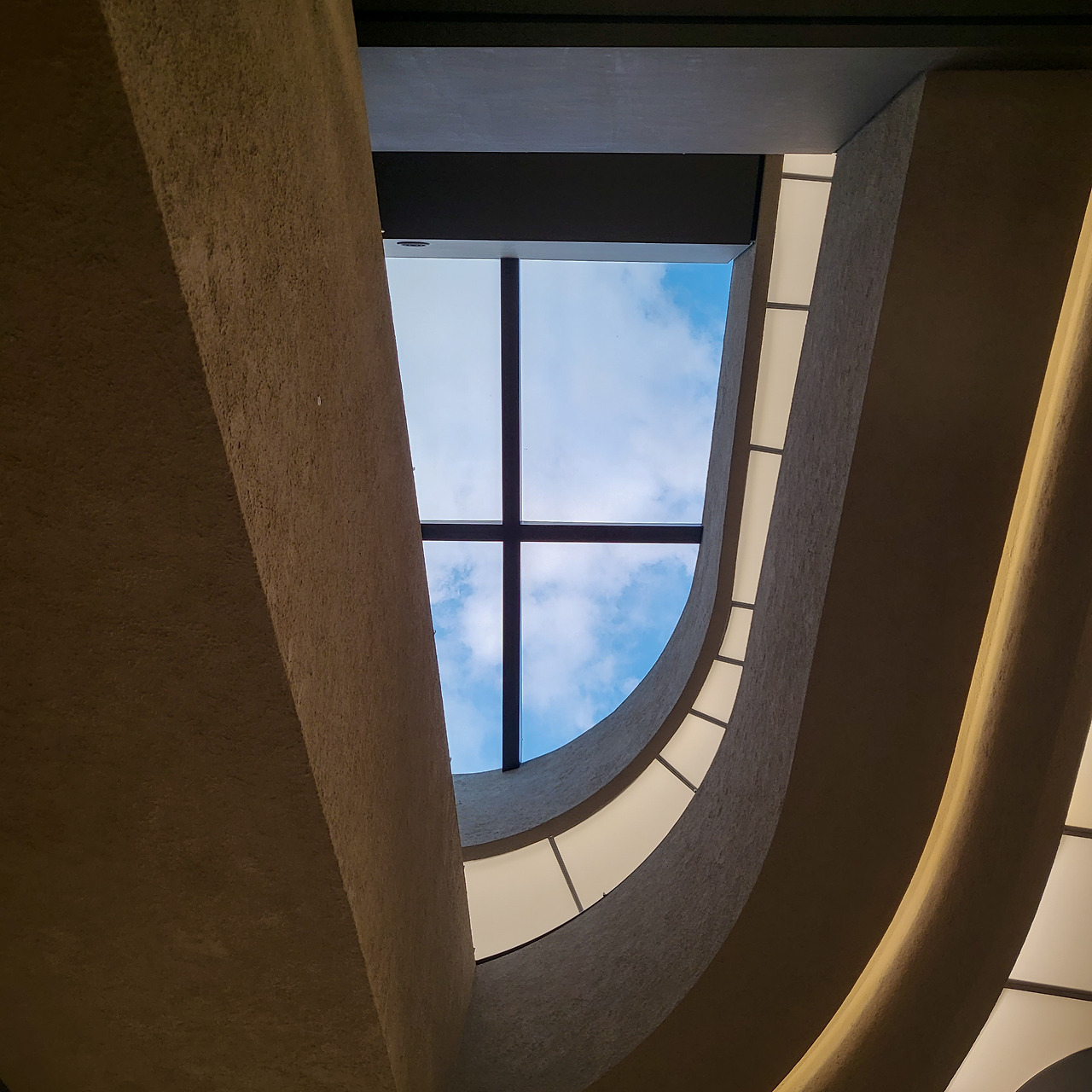 몰입을 위한 공간이기에 공간 자체의 조명이 강하지 않습니다. 대신, 천장의 큰 창을 통해 들어온 자연광을 적극 활용하여 적절한 밝기를 확보한 점이 인상적이었습니다.