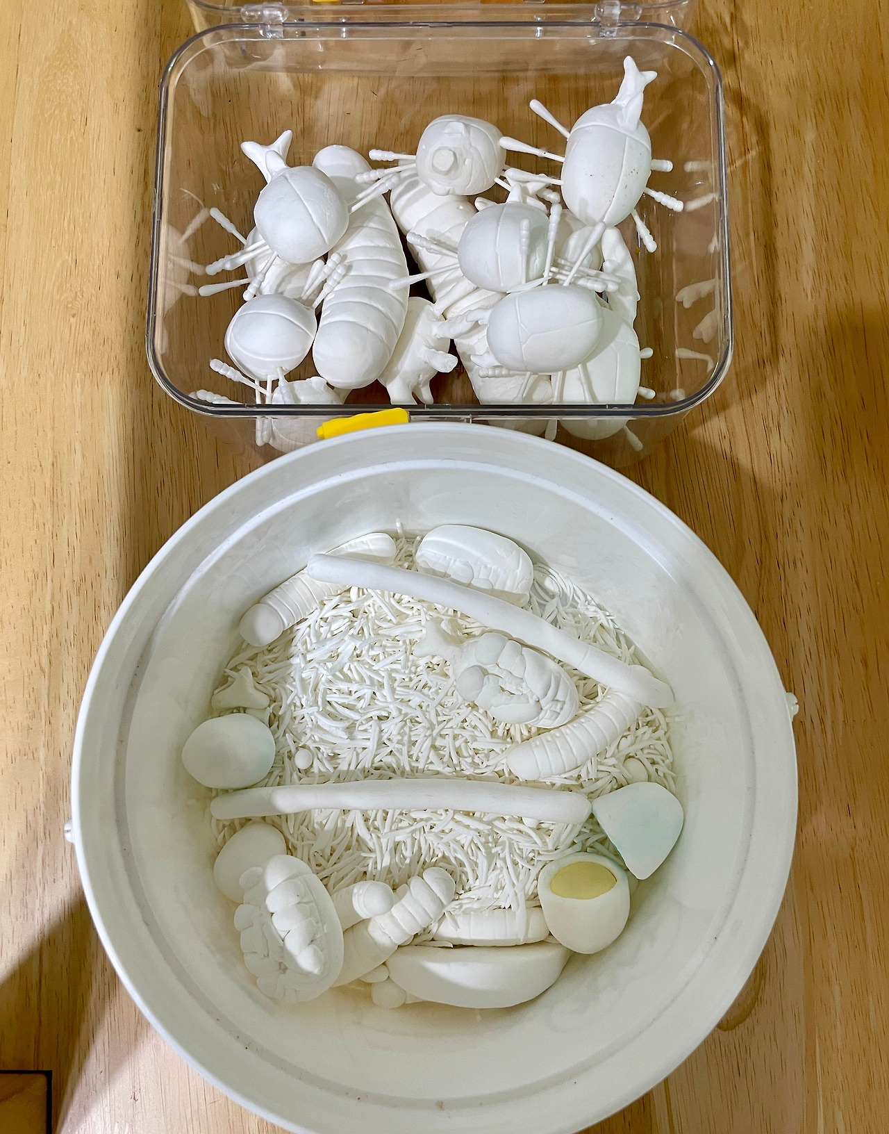 저는 만들기 덕후라서 신나게 한 활동이지만, 앞서 소개한 다리 꽂기 정도로도 충분합니다! 애벌레랑 알은 쉬우니까 함께 만들어 보셔도 좋을 것 같고요. 아이의 소근육도 발달하고, 뿔이 있는 수컷 말고도 다양한 형태에 집중할 수 있어서 교육적으로도 좋았습니다.