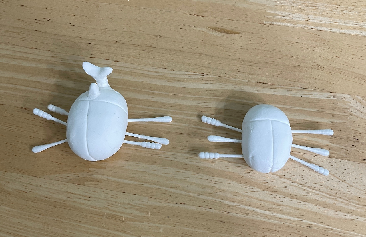 아들이 두 돌 무렵 장수풍뎅이를 함께 만들었습니다. 천사점토로 제가 빚고 아들은 면봉을 반으로 잘라 다리를 꽂게 했어요.