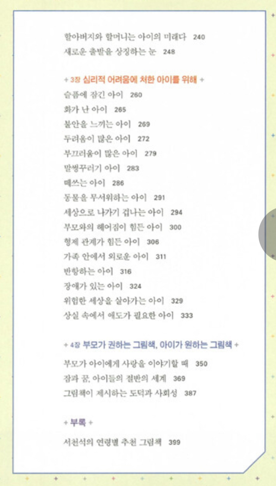 이 책은 서천석 선생님이 자녀와 함께 수많은 시간 동안 그림책을 읽어보지 않았다면 나오지 않았을 책이다. 실제로 아이와 함께 활동하고 놀아보고 나서 경험적으로 얻은 데이터에 소아정신과 의사로서의 전문성이 더해졌기에 나올 수 있는 책이다.