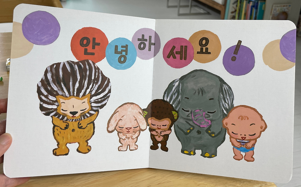 마지막 장면은 동물들과 아기가 나란히 서서 배꼽인사를 하는 장면이다. 아이들에게 익숙한 인사법이다.