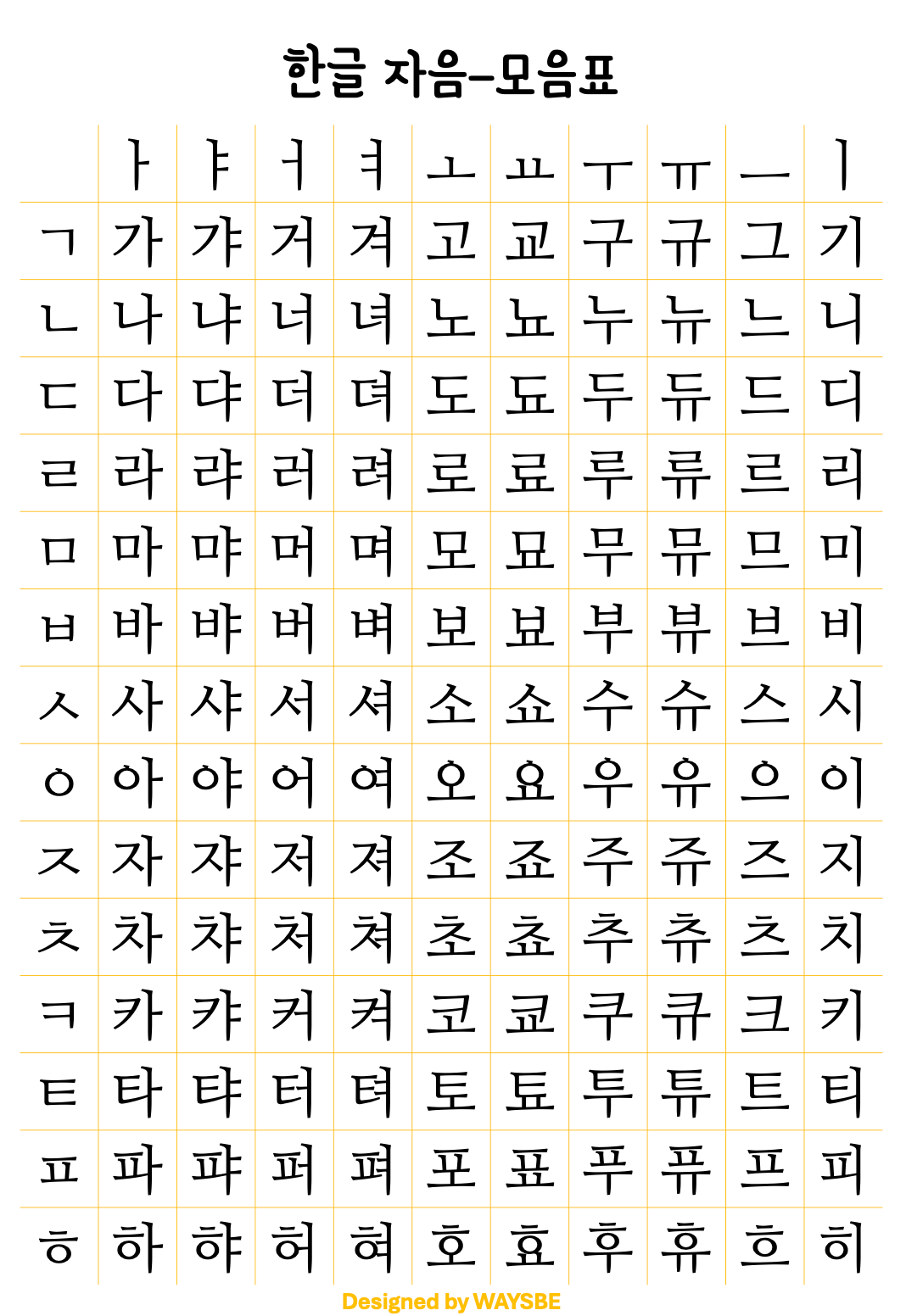 이 한글 자음-모음표는 코팅을 해서 벽에 붙여두셔도 되지만, 그런 용도로 만든 것은 아닙니다. 잘라서 한글 학습 교구로 사용하기 위해 만들었어요.