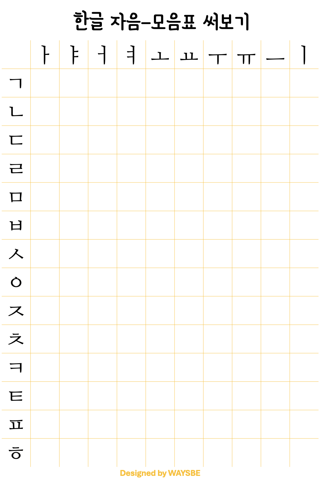3. 한글 자음-모음표 빈칸 쓰기 학습지