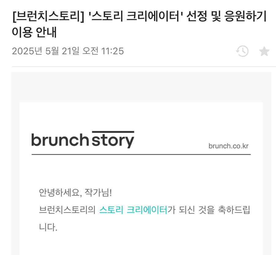 바로바로 스토리 크리에이터에 선정된 것이었어요! 다시 글쓰기를 시작한 날이 4월 25일, 스토리 크리에이터로 선정된 날은 5월 20일이니까 한 달이 좀 못된 날이네요. 목표로 하던 일 중 하나이긴 했지만 생각보다 빨리 되어서 놀라기도 하고 설레기도 해요.