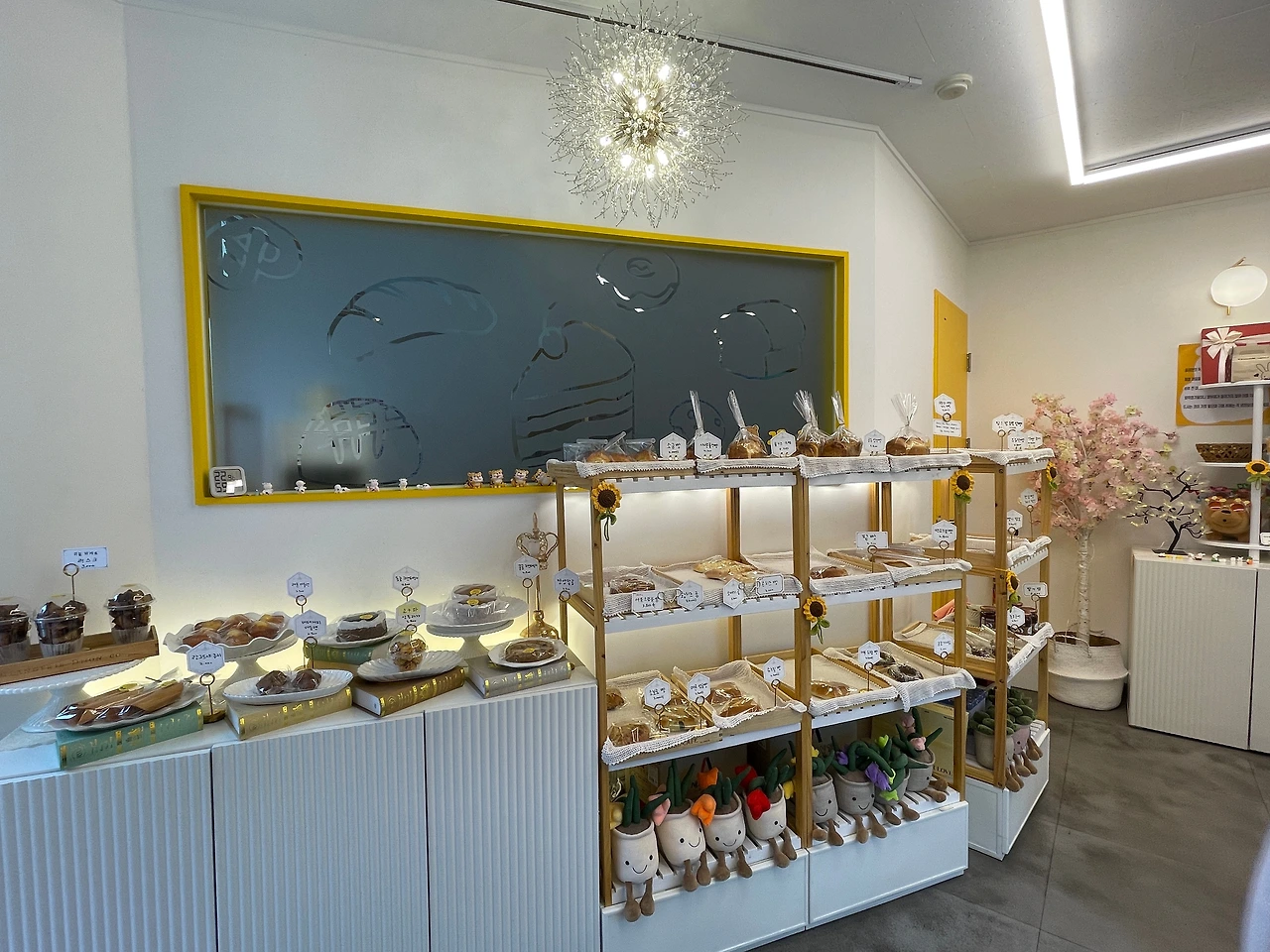 사람의 향기가 난다니, 무슨 말일까요? 가게 곳곳에 마음이 담겨 있음을 느낄 수 있어요. 정형화된 틀에 맞게 가장 잘 팔릴 것 같은 방식으로 깔끔하게 정리된 프랜차이즈 매대와는 달라요. 마치 “나를 애정해 줘.”라고 빵 하나하나가 말을 거는 것 같습니다. 매대 사이사이의 소품들이 그 가게 만의 이야기를 담고 있어요.