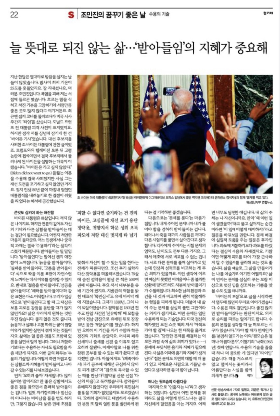 '조민진의 꿈꾸기 좋은 날' 8화 '수용의 기술' 2024년 8월 17일(한겨레신문 토요판)