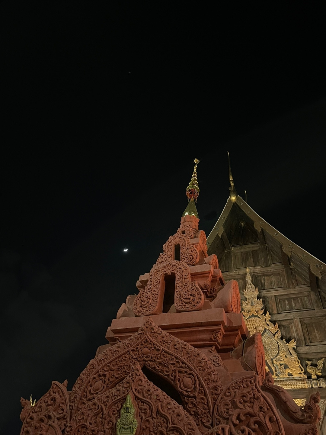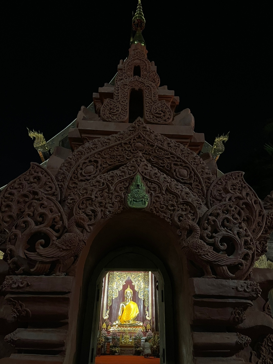 야경을 보러 갔던 치앙마이 올드시티 안의 왓 판따오 사원 안 부처님은 왠지 친구와 나를 향해 지긋한 미소를 보내는 것 같다.