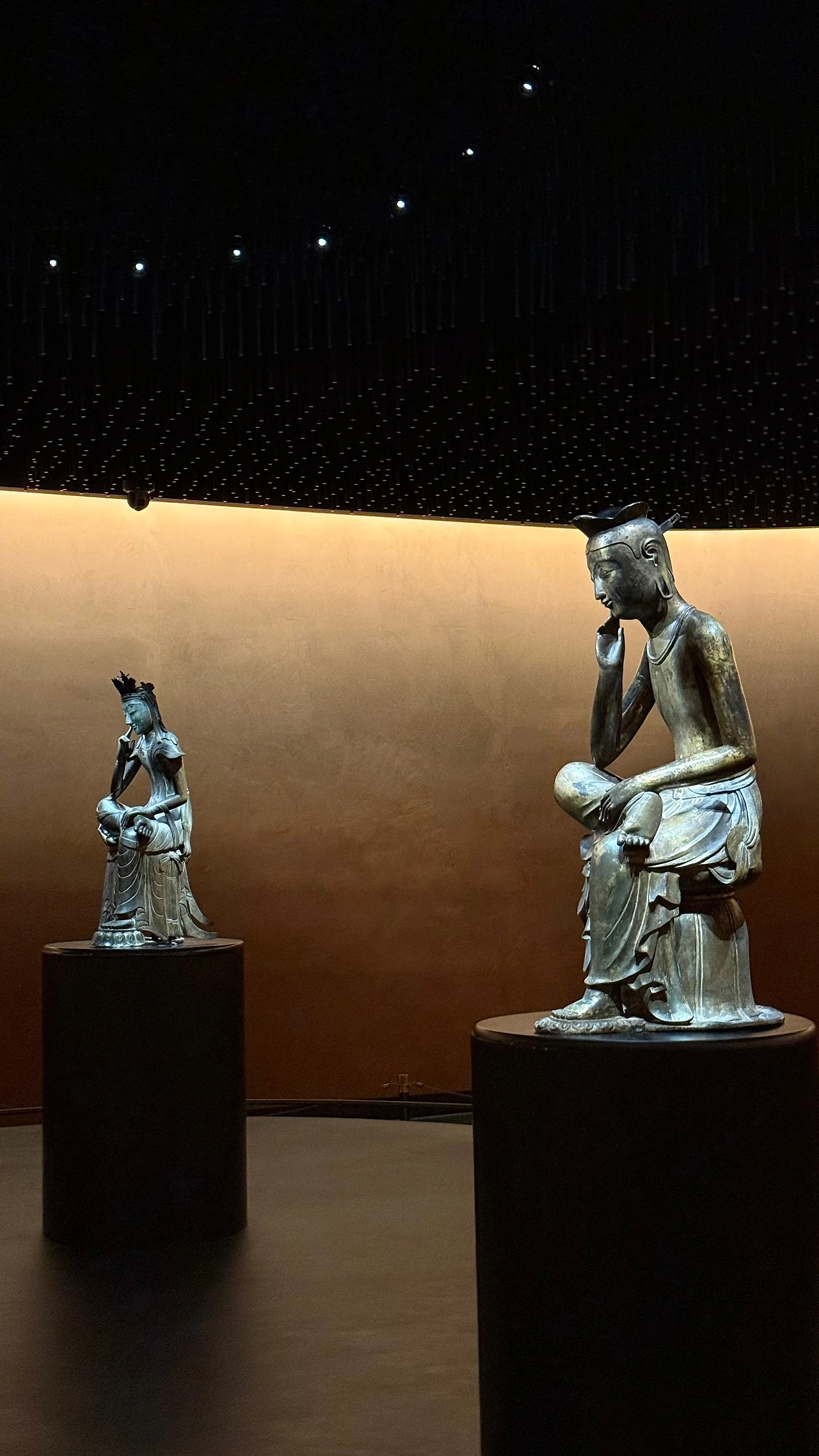 그렇게 다시 마주한 반가사유상은 이상하게도 더 커 보였다. 유리막이 사라진 개방형 전시는 그가 가진 힘을 더 세게 느끼게 했다. 무심하지만 온화한 얼굴. 그 침묵과 잔잔함은 무엇보다 깊었고 그 기세는 무엇보다 높았다. 그 앞에 서자 오래된 시간이 한꺼번에 밀려오는 듯했다. 그것이 어떤 의미인지 다 알지 못해도 나는 무의식적으로 손을 앞으로 모으게 되었다.