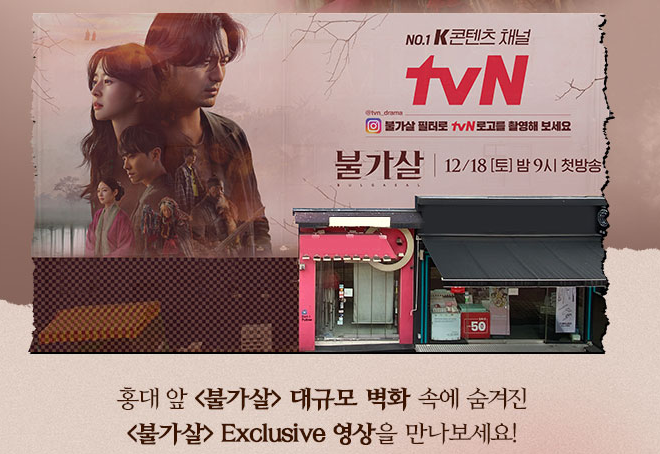 첫 방송 전부터 주목받았던 기대작 #불가살 역시 위에이알과 함께했습니다. 홍대 앞 대규모 벽화에서 활용할 수 있도록 제작한 프로젝트였습니다.