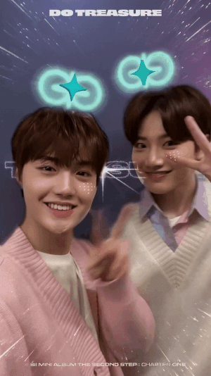 요 필터도 트레져 컴백과 함께 제작된 필터인데요, 앨범의 키비쥬얼을 다채롭게 활용했습니다. 배경으로 쓰인 앨범 커버 이미지와 윙크를 하면 반짝이는 트레져 로고와 화면효과로 인터렉티브한 포인트를 추가했습니다.