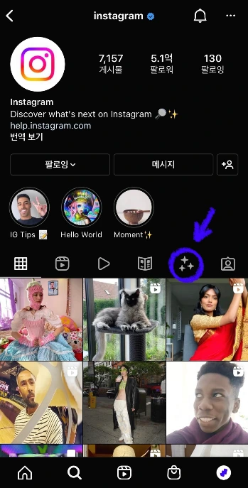 글로벌 브랜드를 비롯하여 센스 좀 있다 싶은 브랜드에는 위 사진처럼 반짝반짝 빛나는 별 탭이 있습니다. 이 탭은 1개 이상의 AR필터가 있을 때에만 활성화되는 필터 탭인데요. 우리 브랜드가 AR필터까지 신경 쓰는 트렌디한 브랜드임을 넌지시 알릴 수 있는 포인트라고 보시면 좋을 것 같습니다. 놓칠 수 없는 별인꾸(별이 반짝이는 인스타그램 꾸미기ㅎㅎ by. 아르진), 이제 시작할 때입니다. 위에이알과 함께!