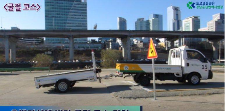 소형견인면허 시험은 1종 보통 트럭 후면에 트레일러를 매달고 굴절, 곡선, T 방향 전환 각 코스 3분 내 통과하는 것으로 합격 기준은 90점, 한 번 감점되면 불합격이다. 첫 시험을 위해 강남운전면허시험장을 찾아갔고 대형면허와 달리 조금 더 편안한 분위기에서 사람들이 대화를 하며 시험 정보를 나누고 있었다. 유튜브에서 보았던 영상을 상기하며 집합 교육 장소에 앉아있는데, 벽에 붙어있는 시험차량 기어봉이 눈에 띄었다.