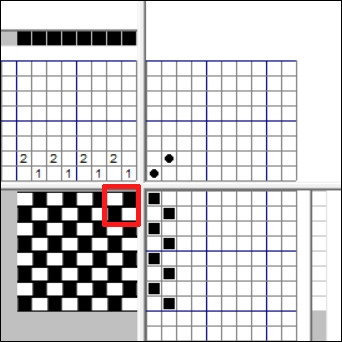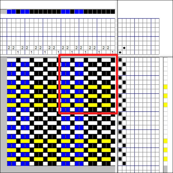 ⑥ 그 결과로 짜여진 직물의 패턴을 그림과 같이 미리 예상할 수 있다.