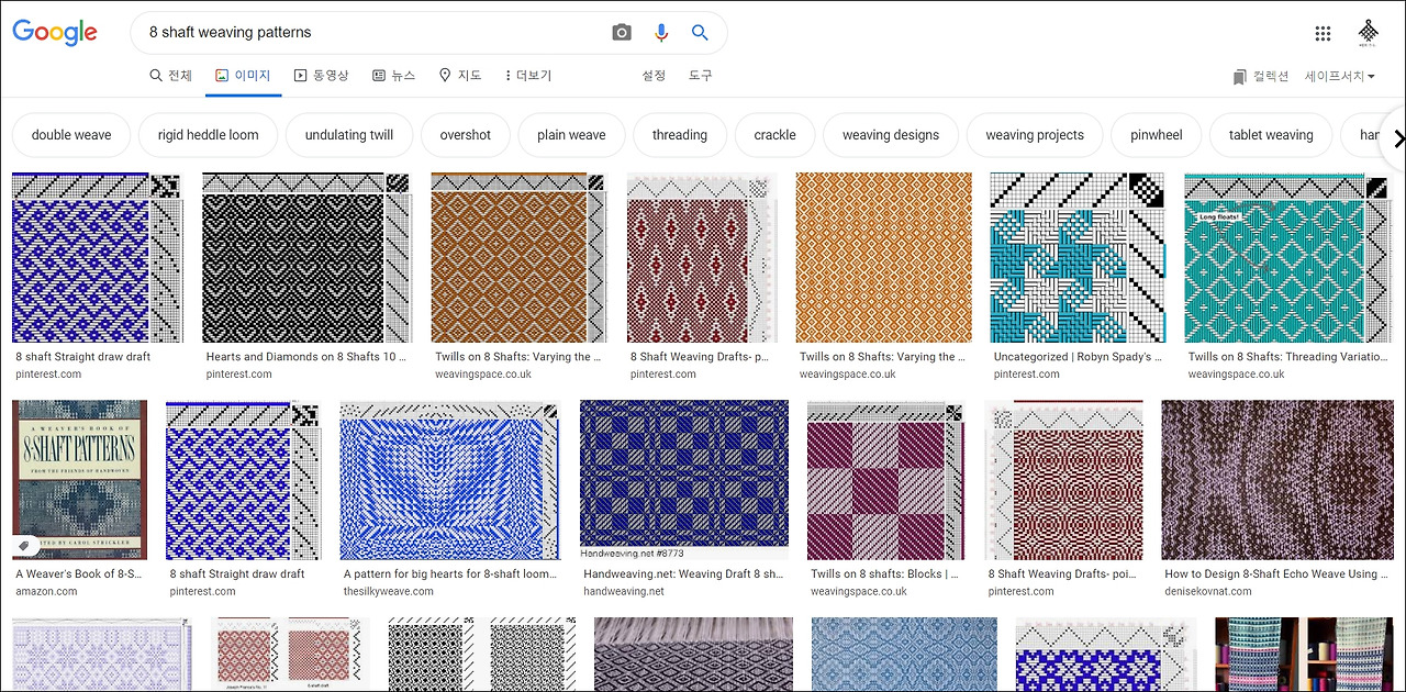 종광의 숫자가 패턴에 얼마나 큰 영향을 주는지를 확인하기 위해서는 이미지검색을 활용할 수 있다. Google에서 '8 shaft weaving patterns'를 검색해서 나온 결과를 보면, 8종광 베틀로 짤 수 있는 직물은 그 종류가 다양해질뿐 아니라 패턴 자체가 더욱 섬세하게 표현되는 것을 알 수 있다.