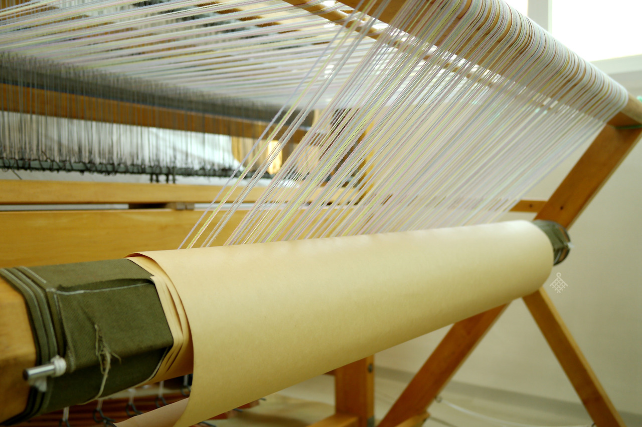 앞쪽과 뒤쪽에 각각 '빔'이 있는데, 앞쪽에 있는 빔은 다 짜고난 직물을 감아놓는 것으로, '직물빔' 혹은 '홍두깨' 라고 부른다. 뒤쪽의 빔은 '경사빔'이라고 하며 '도투마리'라고도 부른다. 경사빔에 실이 걸려있는 모습을 보고 '같이 끼워져있는 것은 무엇이냐'는 질문을 정말 많이 받는다. 그것은 그냥 종이다. 우리가 언제 어디서나 쉽게 접할 수 있는 종이. 경사빔에서는 그게 종이인지 다른 특별한 물건인지가 중요한 게 아니라 그 역할이 중요하다. 실을 반복적으로 빔에 감게 되면 실이 쌓이면서 실과 실 사이로 실이 파고들 때가 있다. 이렇게 되면 실의 길이가 일정하지 않게 되고, 천을 짜다보면 파고든 쪽은 지나치게 팽팽해지고 그 외에는 너무 느슨해진다. 이 상태로 천을 짜게 되면 직물이 고르지 않게 나온다. 이런 문제를 방지하기 위해 실이 일정한 길이로 감길 수 있도록 항상 실과 종이를 함께 감아준다.