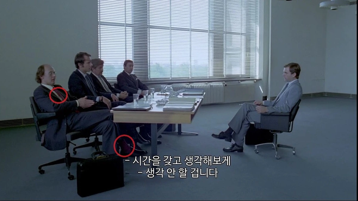 추락한 마크의 시체를 누군가가 발견한다. 남자는 마크의 목표물이었던 핑크색 양말을 신은 사나이다. 핑크 양말과 핑크 넥타이를 한 그 남자는 붉은 넥타이와 붉은 양말을 신고 있던 마크의 동료와 동일한 외형을 갖고 있다. 세상을 구하자고 회유책을 펴던 사내에게도 그 자신을 질료로 삼은 또 다른 악이 존재하는 것이다.