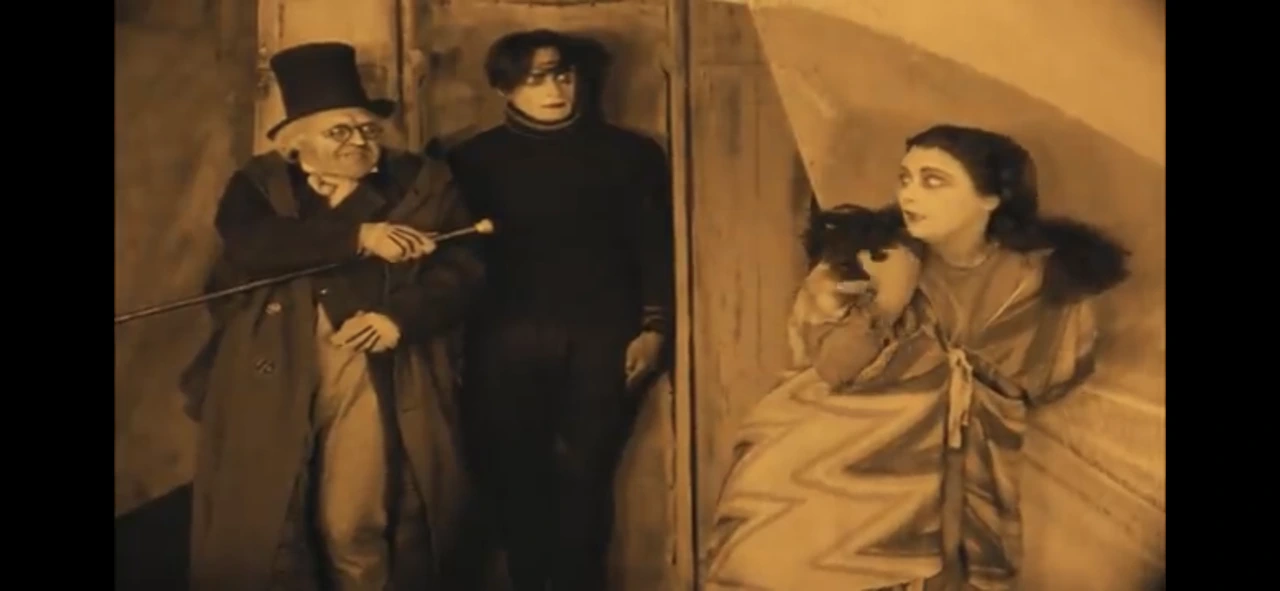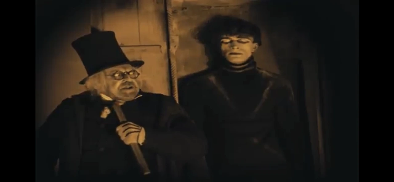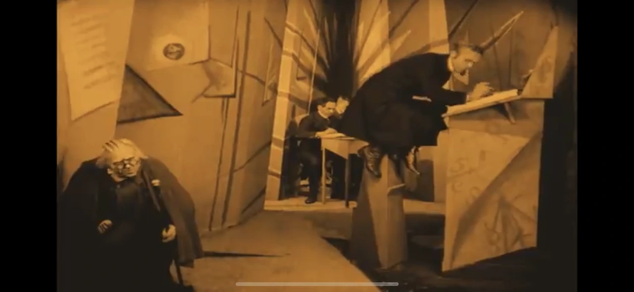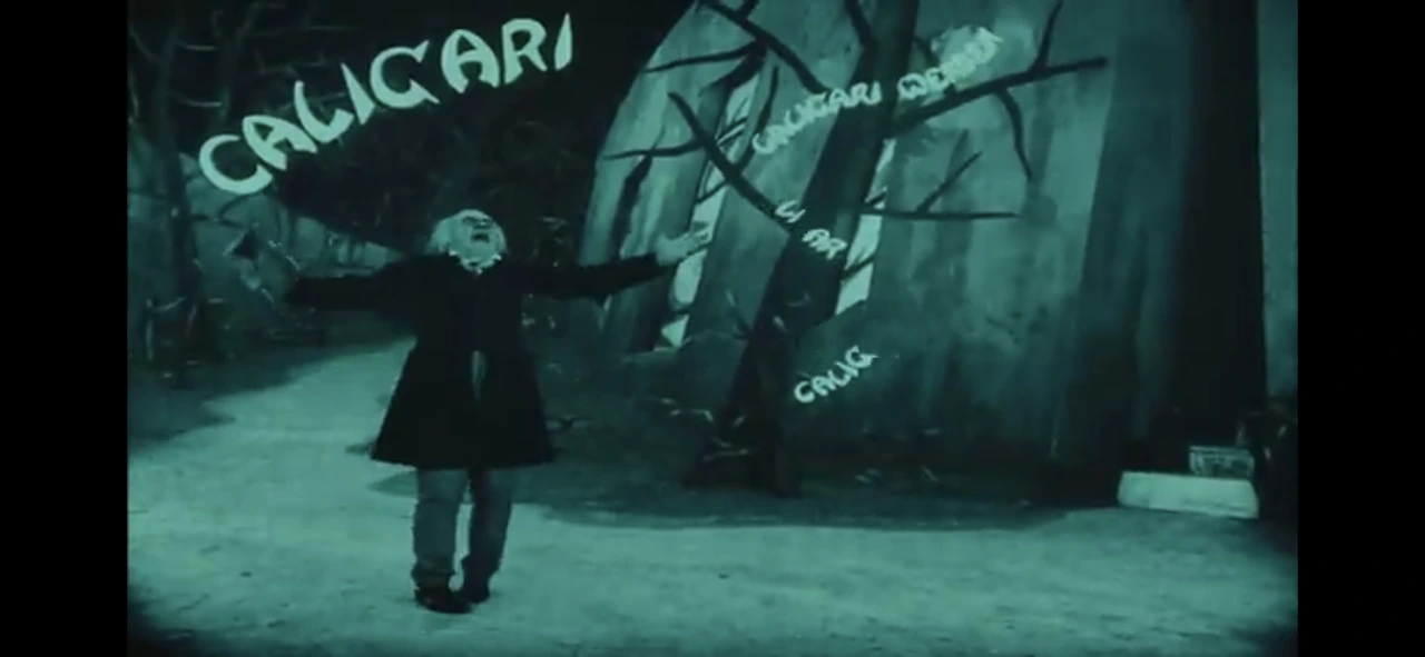 <칼리가리 박사의 밀실(1920)>은 무성영화 시기에 가장 활발하게 제작되었던 표현주의 영화의 대표작이다. 과장된 조명과 연극무대를 연상시키는 건축학적인 장치, 뚜렷한 명암의 대비, 착란에 휩싸인 인물 등 비틀리고 왜곡되어 있는 시대의 광기를 포착한 작품이라 할 수 있다. 원근의 파괴와 굽이 치는 벽, 소실점의 상승은 역동적이고 과장된 배우의 연기와 맞물려 박탈당한 개인의 자유를 되려 직접적으로 드러낸다.