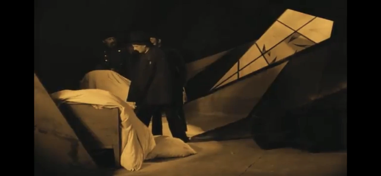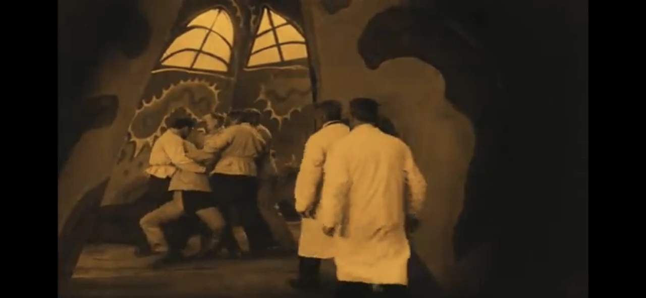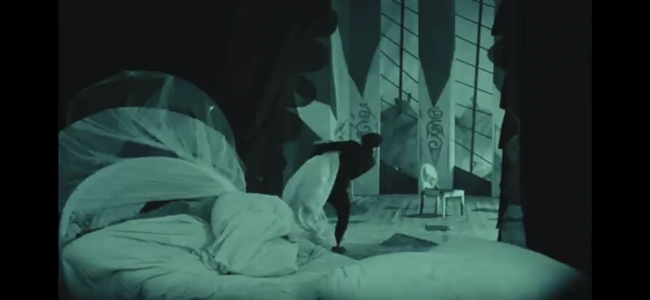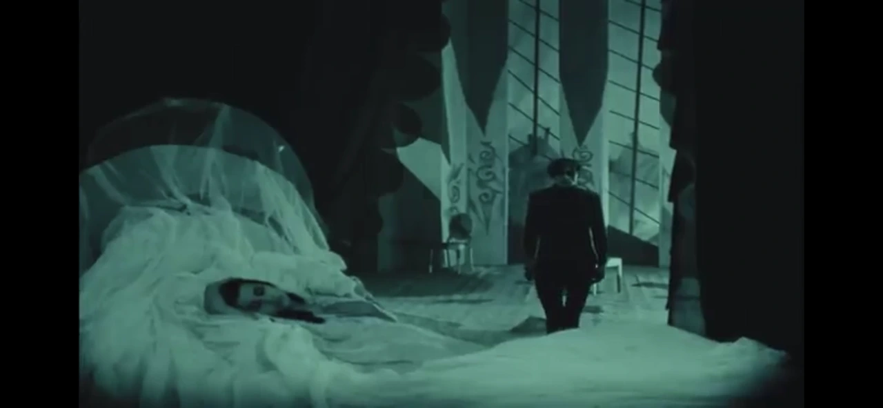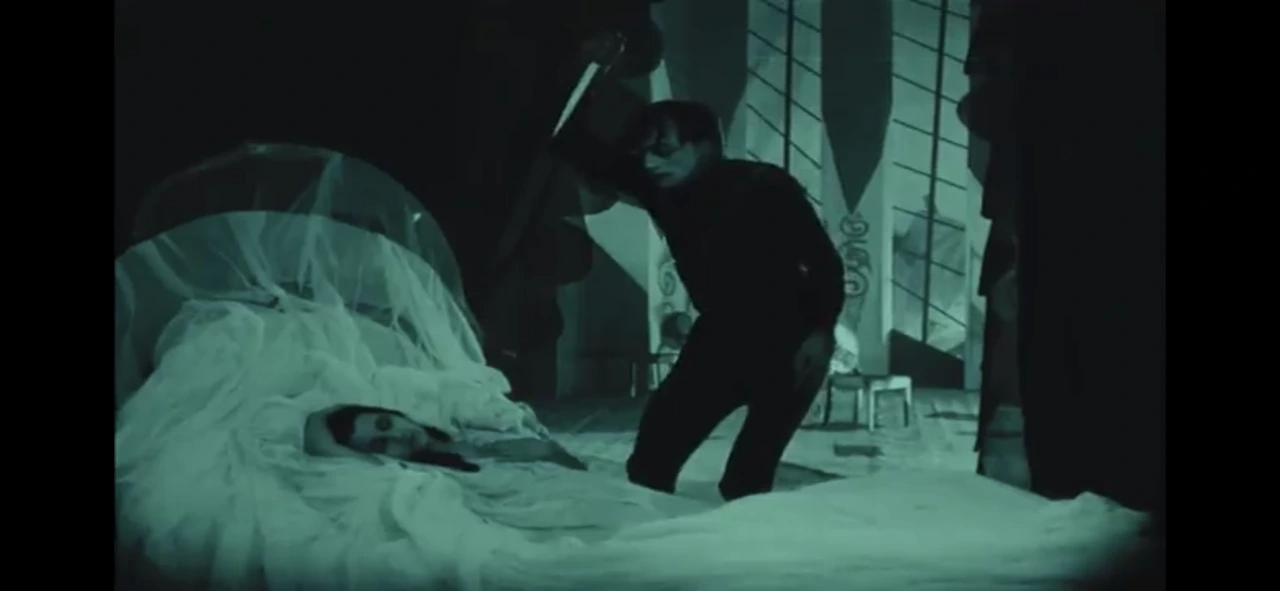<칼리가리 박사의 밀실(1920)>은 무성영화 시기에 가장 활발하게 제작되었던 표현주의 영화의 대표작이다. 과장된 조명과 연극무대를 연상시키는 건축학적인 장치, 뚜렷한 명암의 대비, 착란에 휩싸인 인물 등 비틀리고 왜곡되어 있는 시대의 광기를 포착한 작품이라 할 수 있다. 원근의 파괴와 굽이 치는 벽, 소실점의 상승은 역동적이고 과장된 배우의 연기와 맞물려 박탈당한 개인의 자유를 되려 직접적으로 드러낸다.