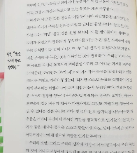 타인의 기대에 어긋나면 우리는 남들의 비난을 받고 더욱 고립된 위험을 무릅써야 할 뿐만 아니라, 우리 인격의 정체성을 잃어버릴 위험까지 무릅쓰게 된다.