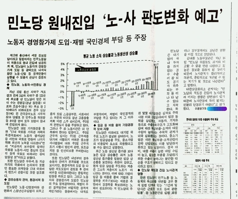 제17대 총선 민노당 원내 진입, 노동자의 경영 참여 등 공약