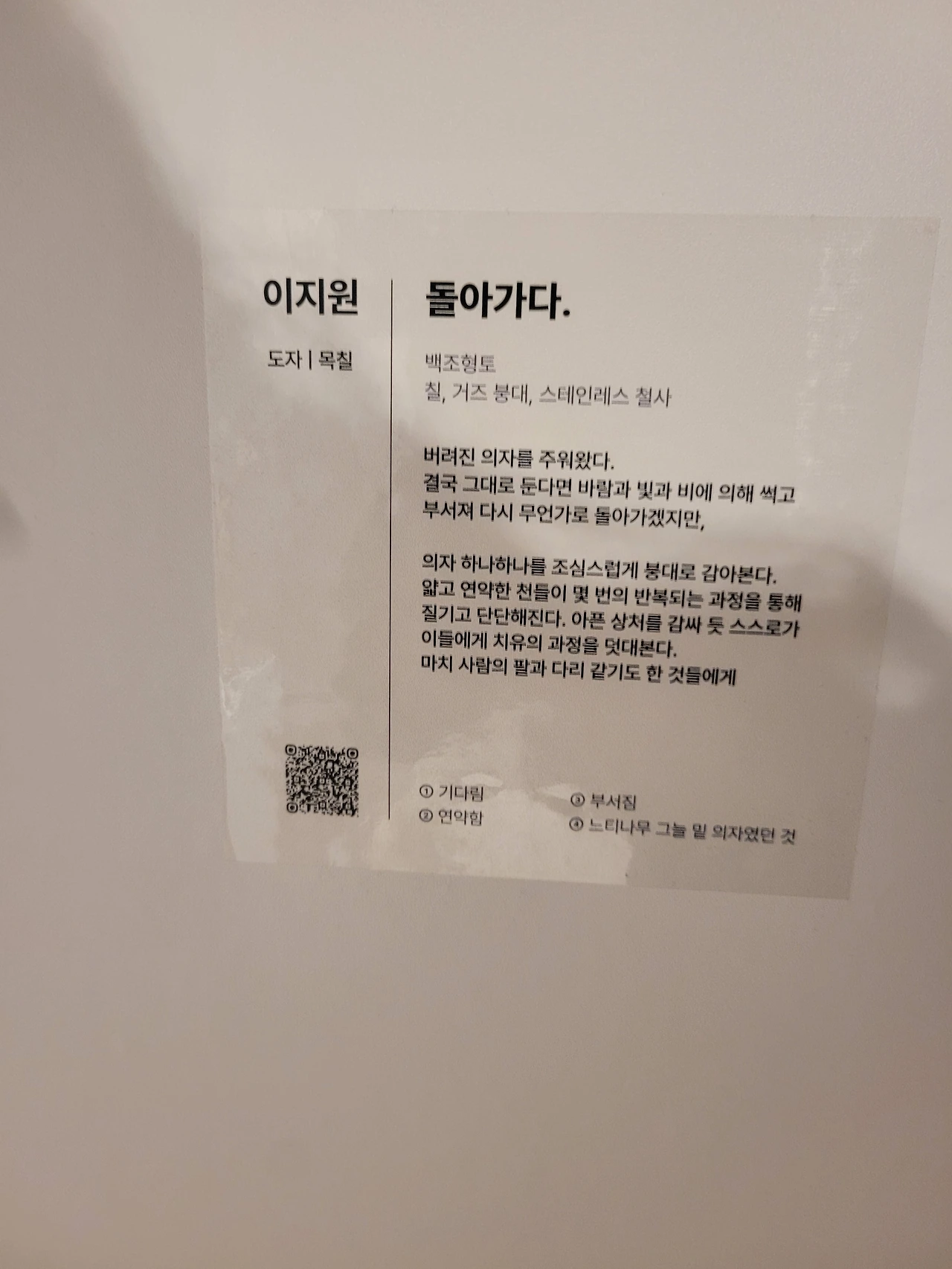 껍질을 본뜬 '거즈 의자'는 의자지만, 부서졌어도 딱딱한 '의자의 파편'은 의자가 아니라고 할 수 있을까요?