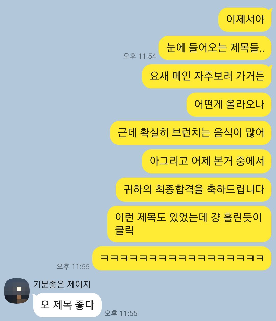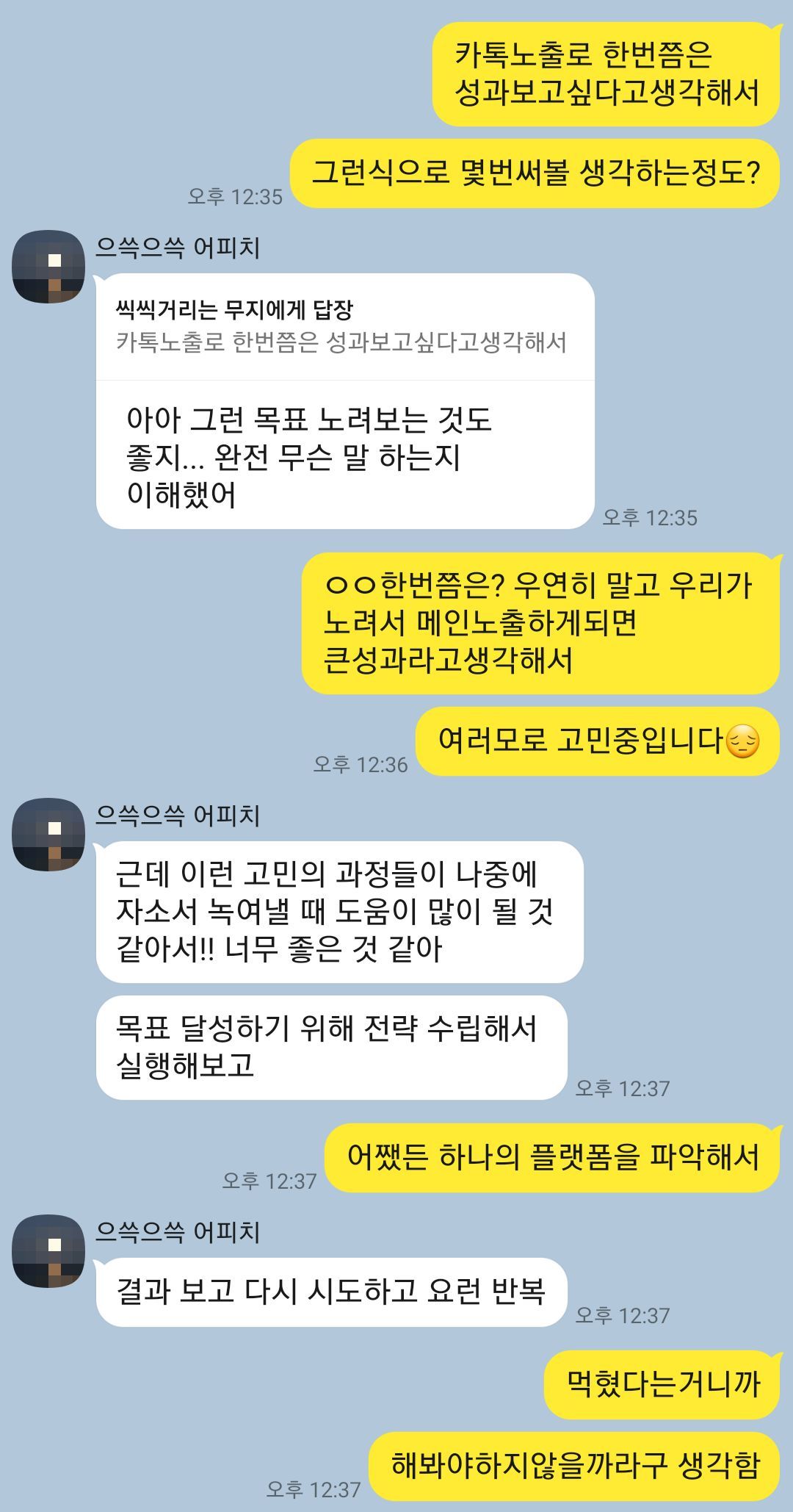 그러다 브런치 메인을 둘러보며 웹툰 분석이라는 주제가 브런치 메인에서 밀어주는 소재가 아닌 것 같다는 생각에 미쳤다. 우리는 취업에 내세울 SNS 포트폴리오를 운영하면서, 구독자 수나 좋아요 수와 같은 지표를 고려하지 않을 수 없었고, 뭔가 이대로는 안 된다는 생각이 들었다. 나는 에디터 Sue에게 카카오톡과 다음 메인에 노출되는 것을 목표로 에세이를 써보자고 제안했다. 브런치가 좋아하는 글을 써서, 브런치라는 플랫폼의 특성을 완벽하게 이해하고 성과를 냈다는 그럴듯한 자소서 스토리를 만들고 싶은 것도 있었다.