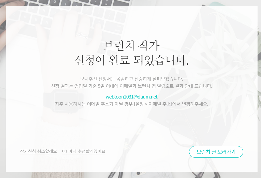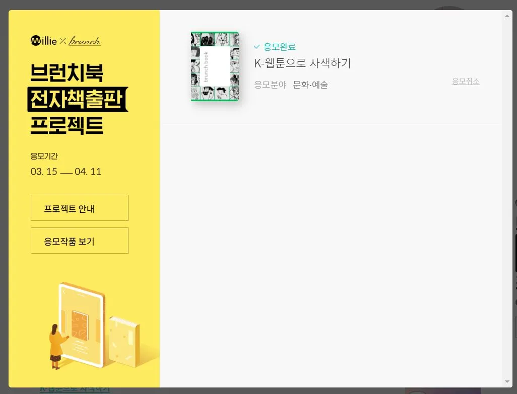 둘이서 함께 하기로 결정한 후, 네이버 블로그, 트위터, 인스타그램 등의 여러 플랫폼들 중에 어떤 플랫폼이 우리가 가진 콘텐츠를 올리기 적절할지 고민했다. 그중에서도 브런치를 선택한 이유는 콘텐츠에 대해 깊이 있게 고민하는 글을 꾸준히 연재하기에 적합한 플랫폼이라고 생각했기 때문이다. 이후 각자 한 편씩 웹툰을 리뷰하는 글을 써 두 편의 글을 모아, 브런치 작가 승인을 신청했다. 그리고 운이 좋게도 한 번에 심사를 통과했다.