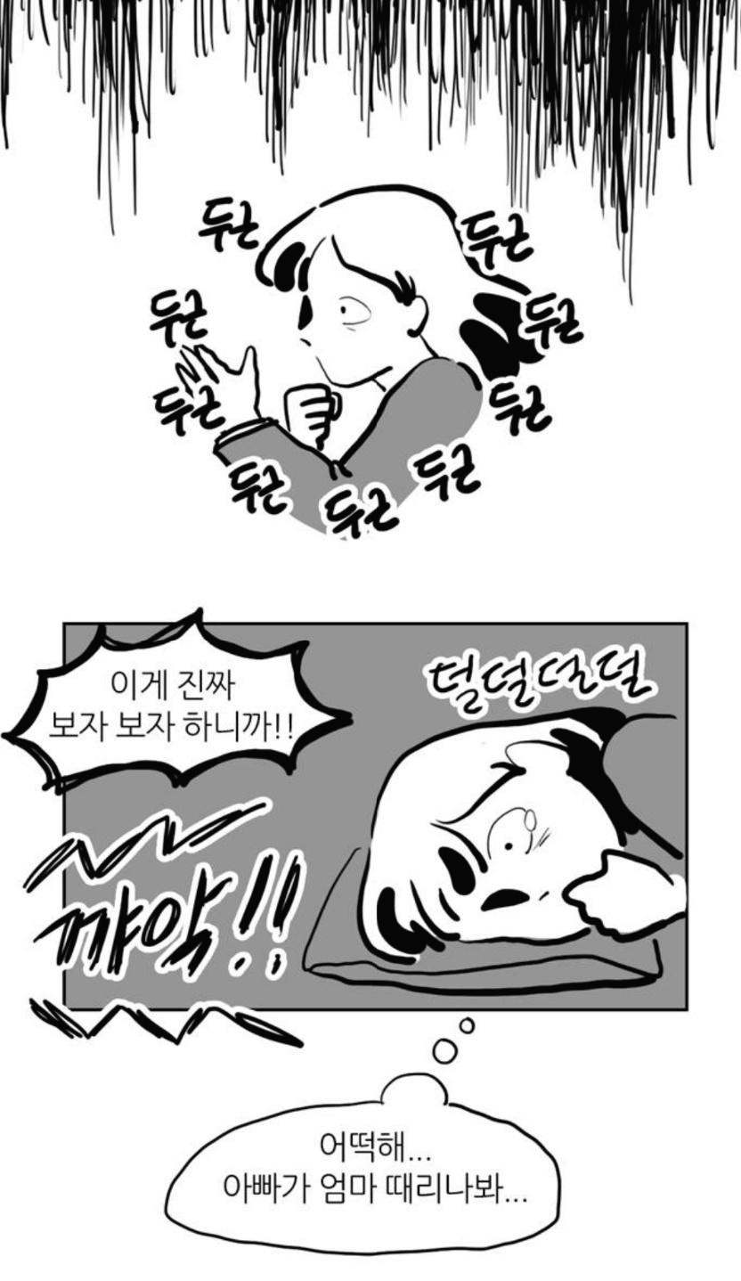 여러 작품을 보다 보면, 술을 마시고 폭력을 휘두르는 가장의 모습이 종종 나오곤 한다. 그런 장면은 일반적인 가정폭력의 모습으로 자리잡아 있는 것 같다. 가정 폭력이 사람을 미치게 하는 이유는 단순히 육체적 고통과 공포 때문일까.